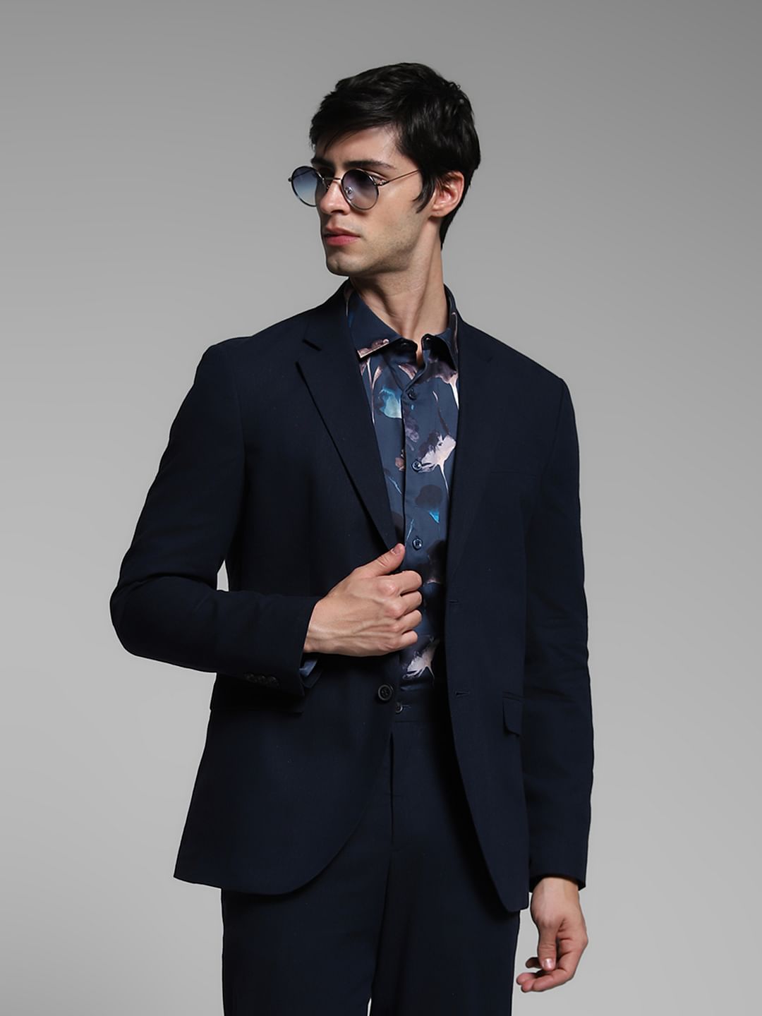 Tailored meets effortless in this dark blue slim-fit linen blazer. With a sharp notched lapel, double-button closure, and a lightweight feel, it’s the perfect balance of smart and laid-back. Dress it up or keep it casual—either way, you’re winning.