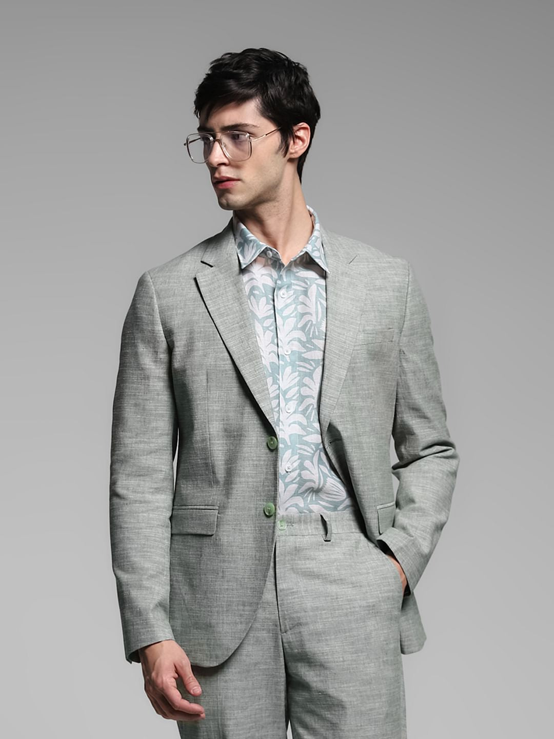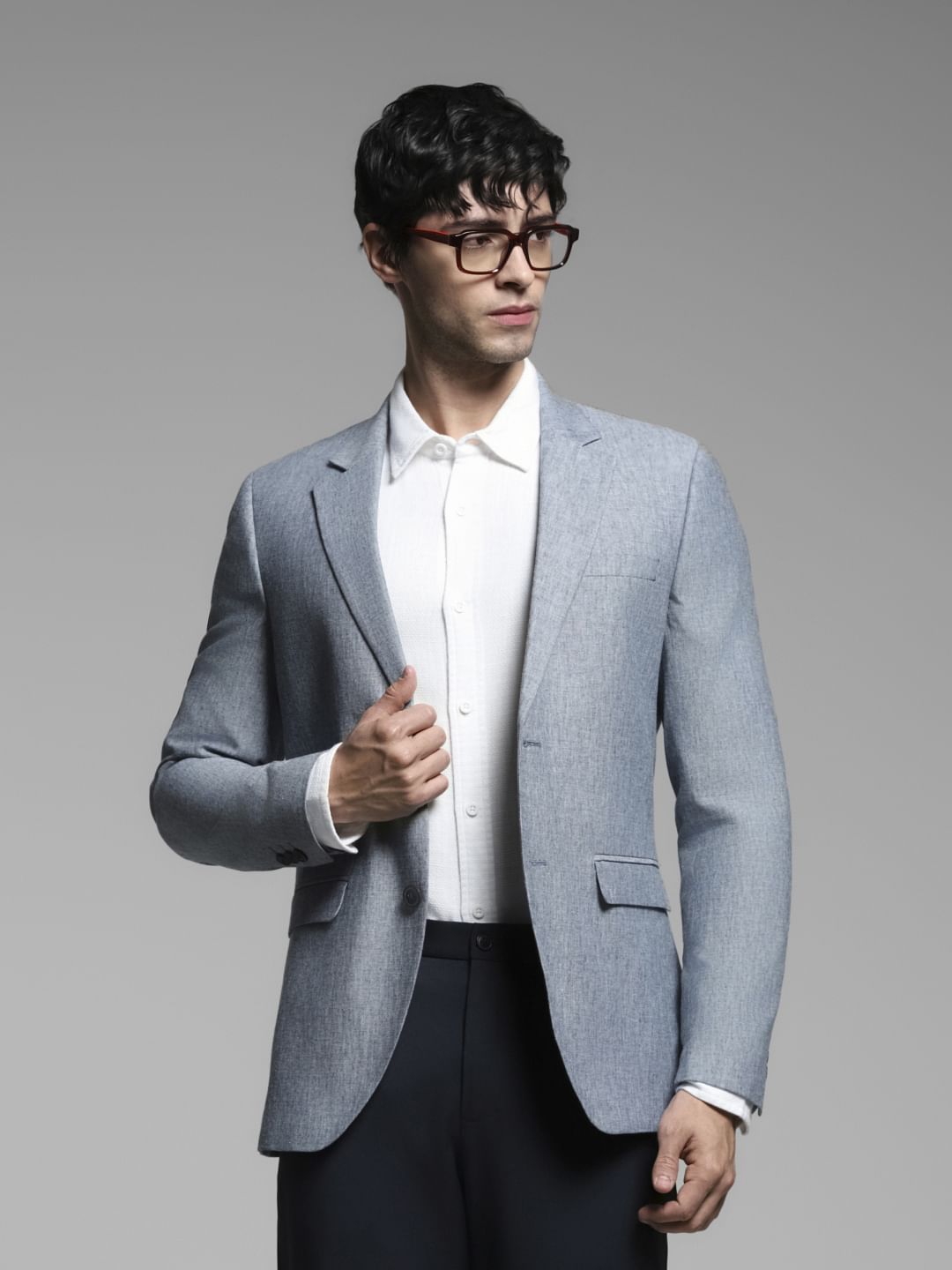 WHITE STRIPED SLIM FIT LINEN BLAZER