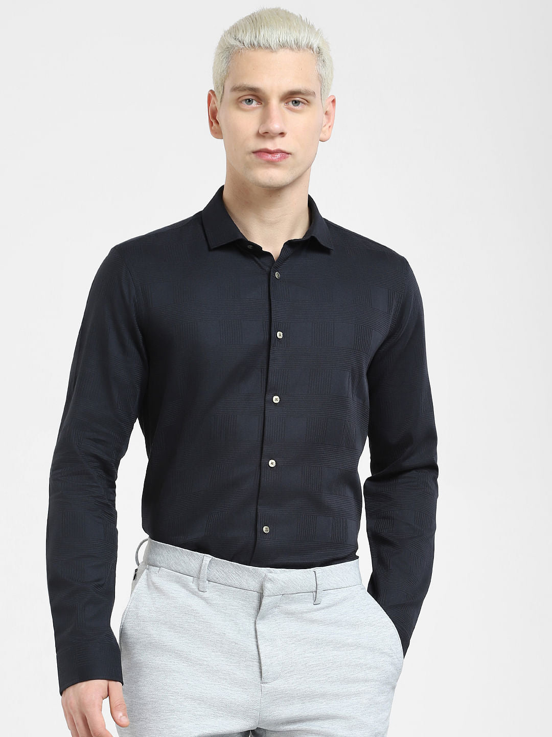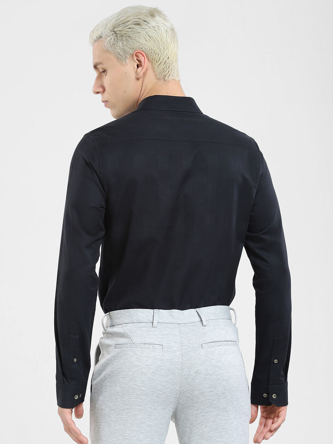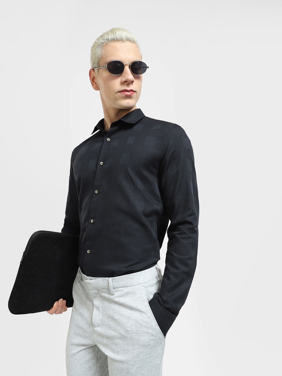 Men's 100% cotton full sleeves shirt with self-design fabric. Perfect to wear with trousers and formal shoes for a 9 to 5 look.