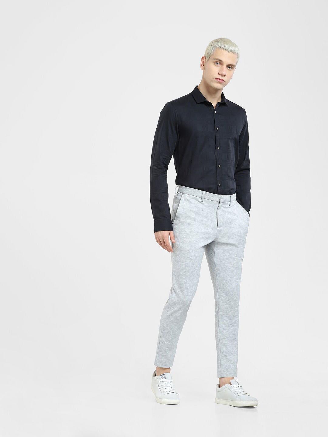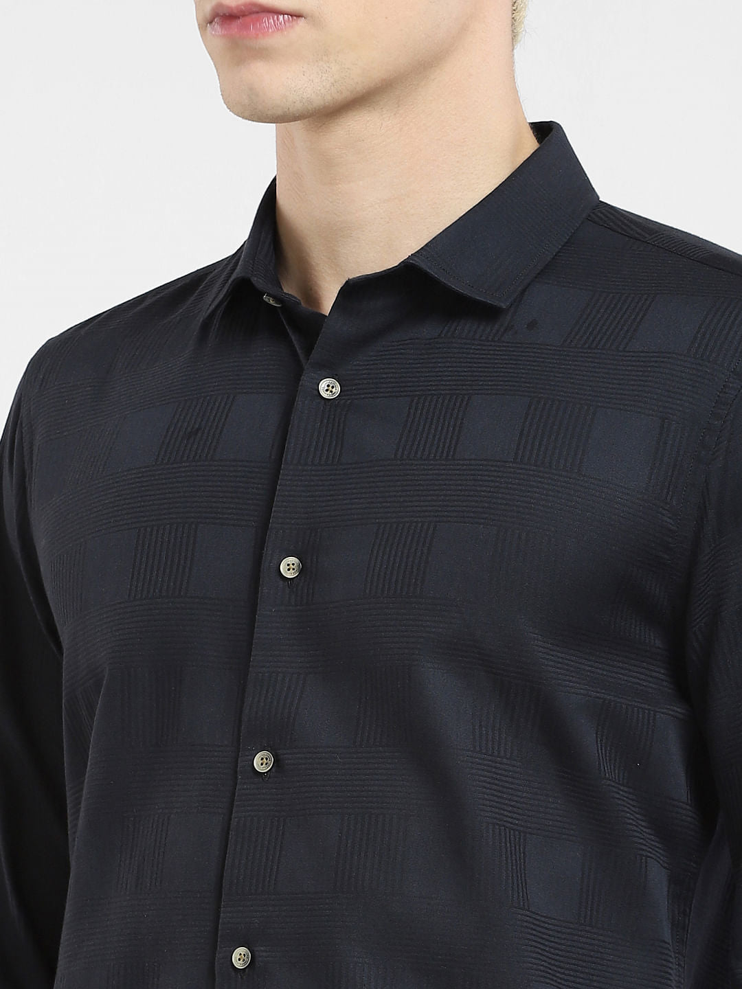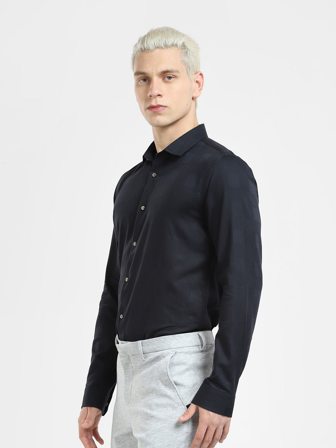 Men's 100% cotton full sleeves shirt with self-design fabric. Perfect to wear with trousers and formal shoes for a 9 to 5 look.