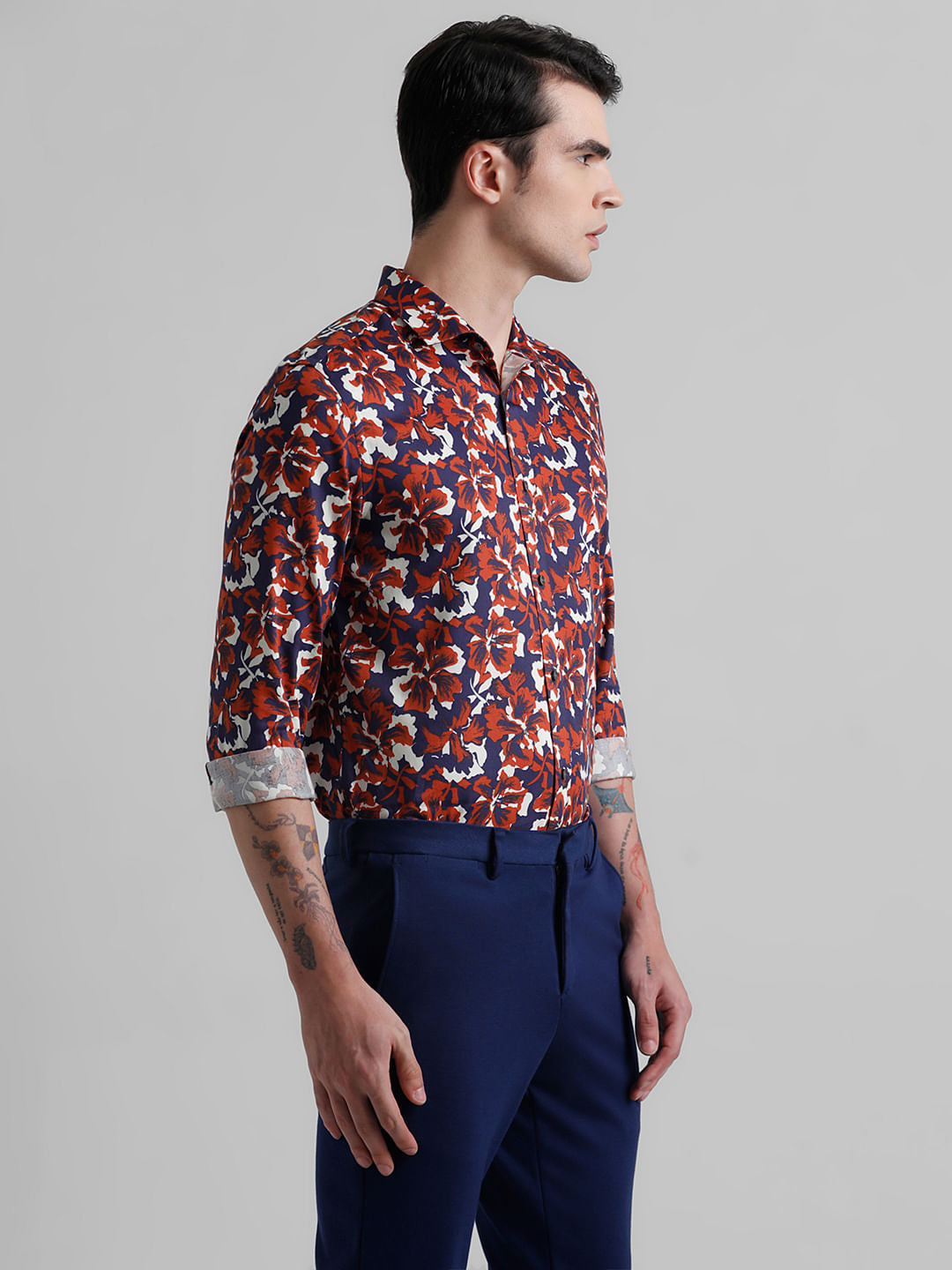DARK PURPLE FLORAL FULL SLEEVES SHIRT
