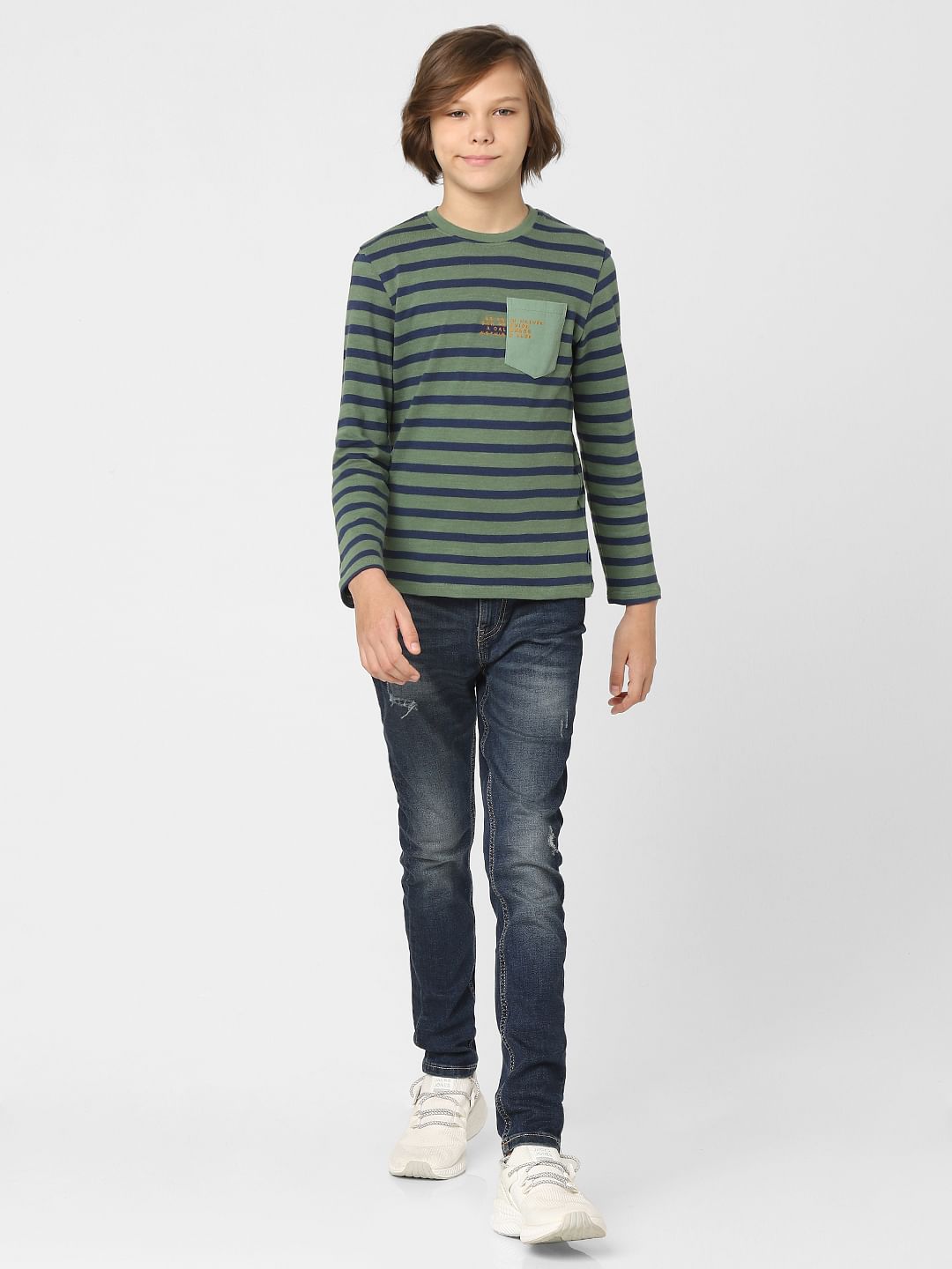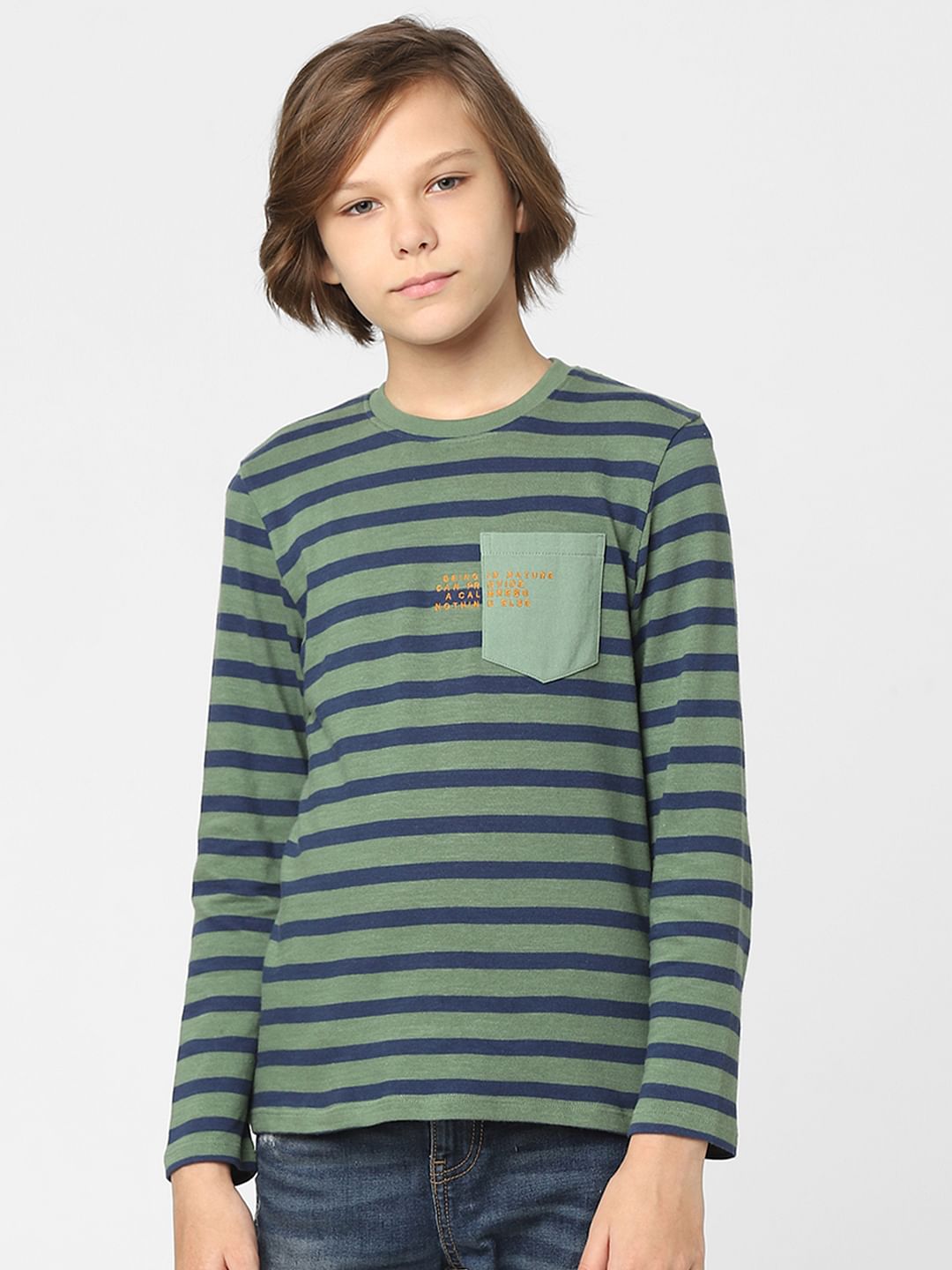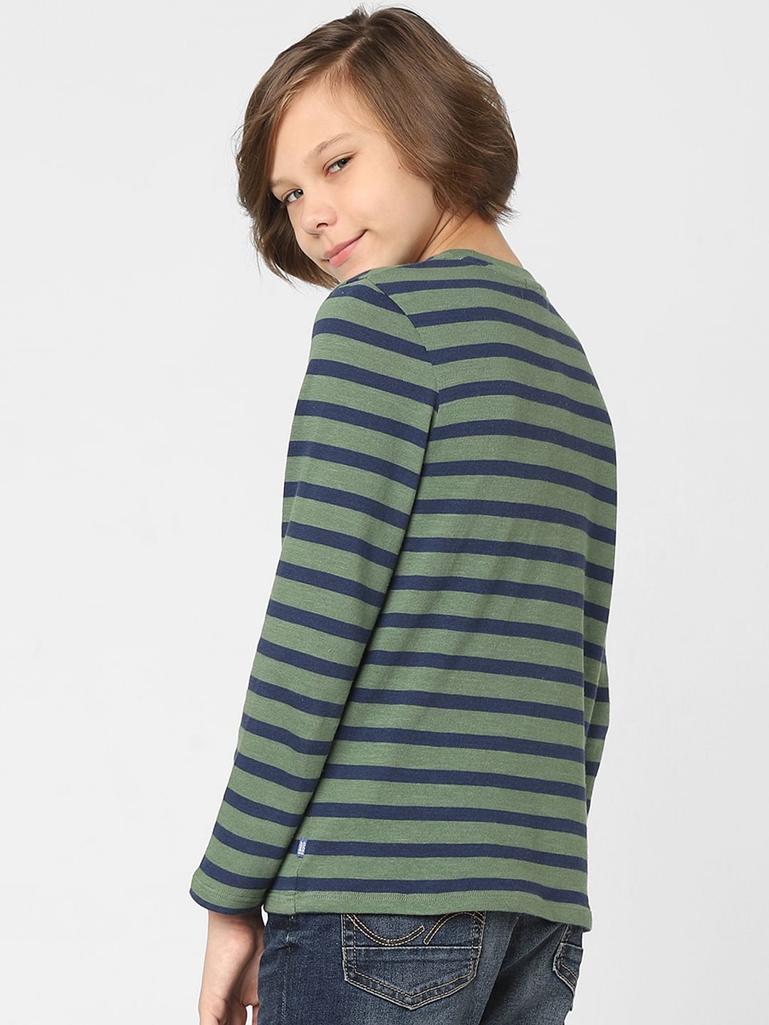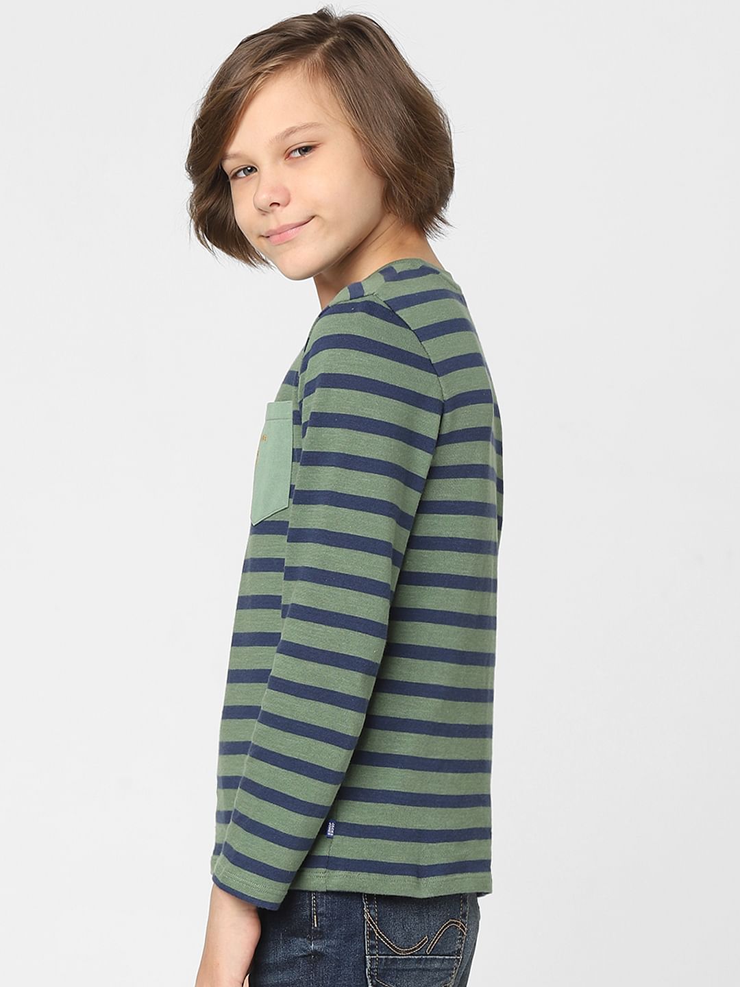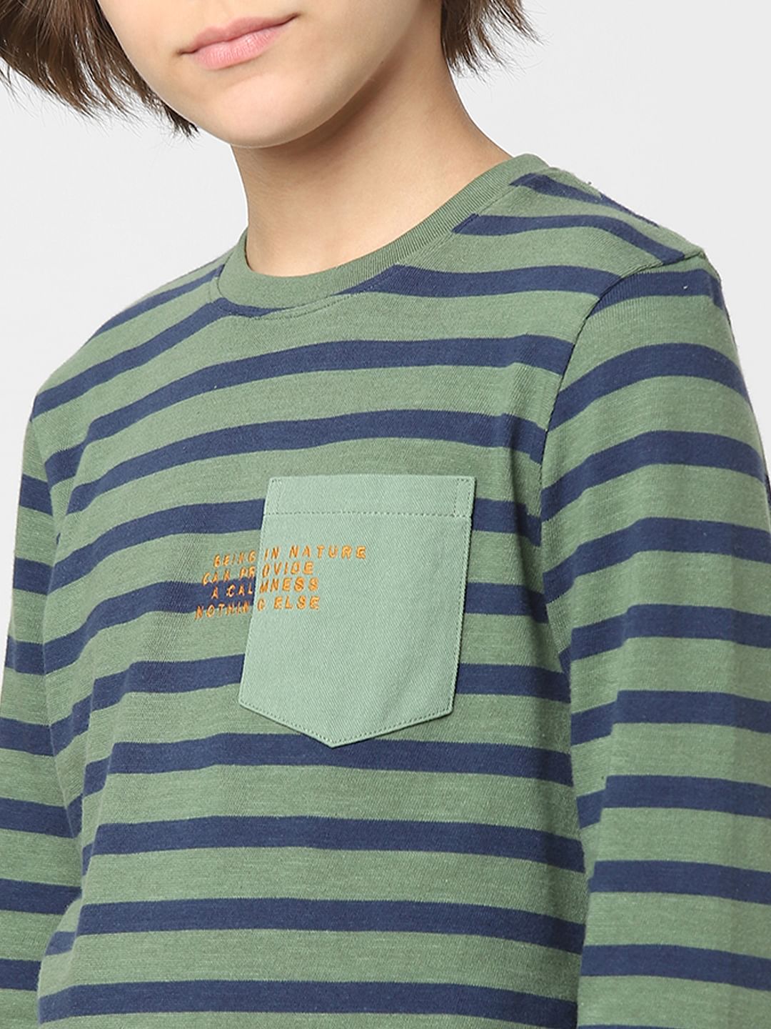 BOYS GREEN STRIPED CREW NECK T-SHIRT