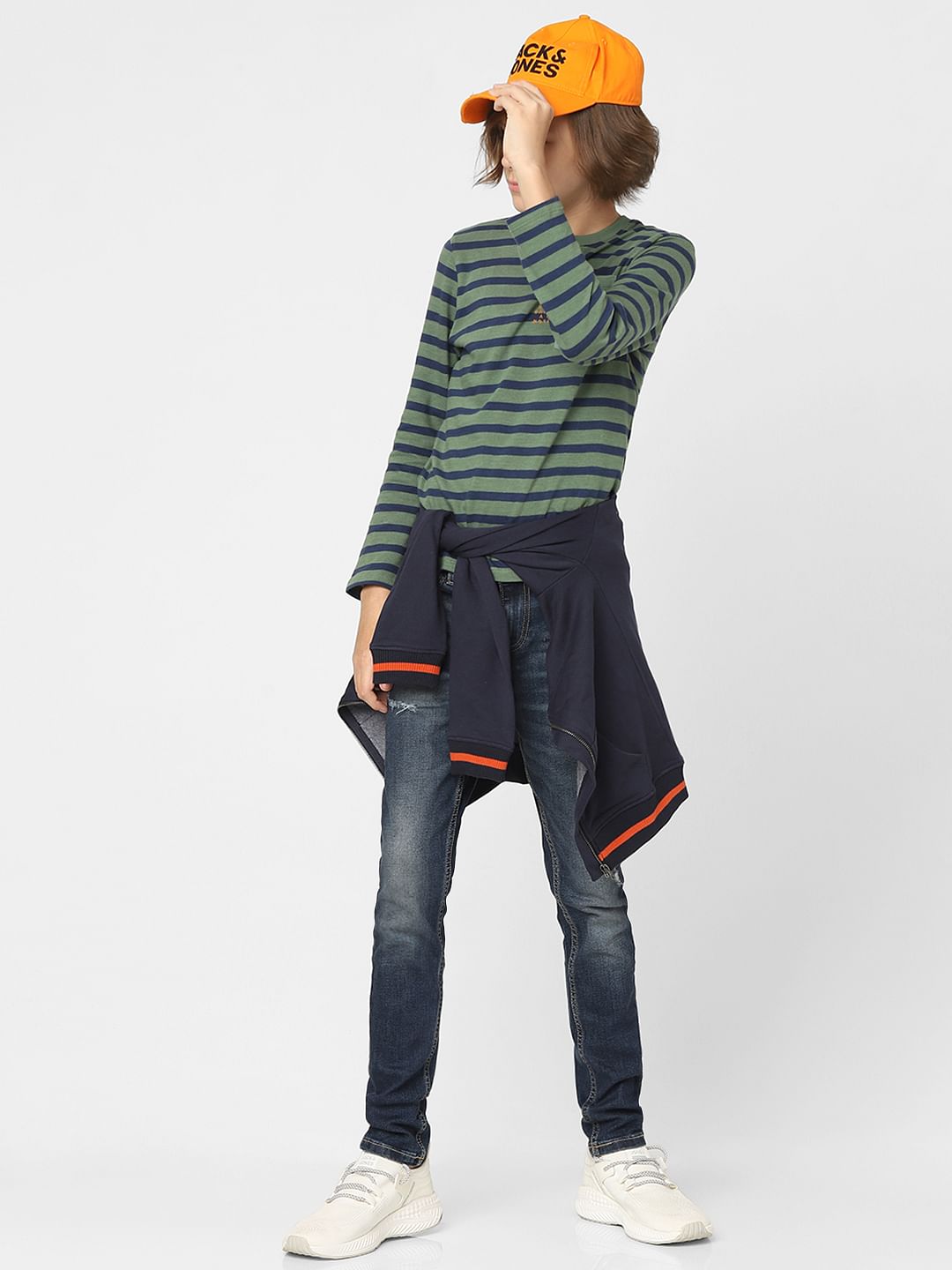Striped t-shirt for little boys. Cut in a slim fit with full sleeves and round neck. Can be paired with denims shorts and sneakers.