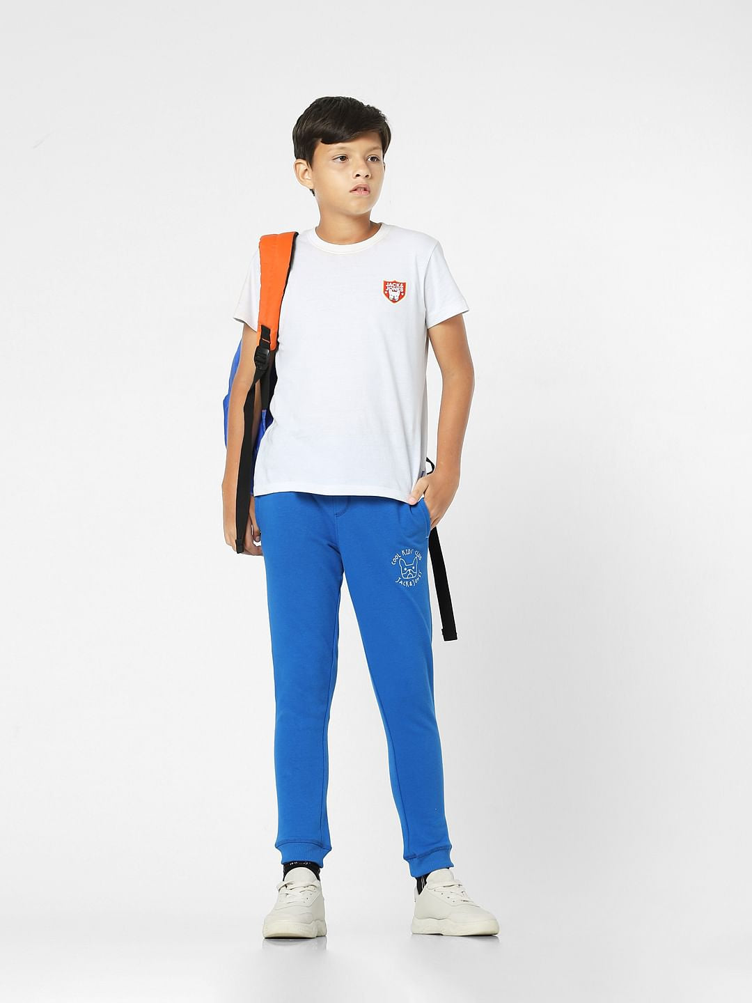 Bright blue mid rise sweatpants for little boys. Designed with a drawstring waist and logo print detailing. Made from premium quality fabric for a good fit & feel. Style with a tee and sneakers.