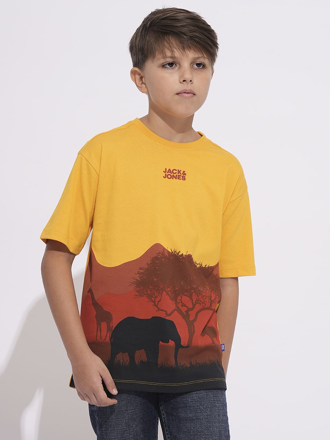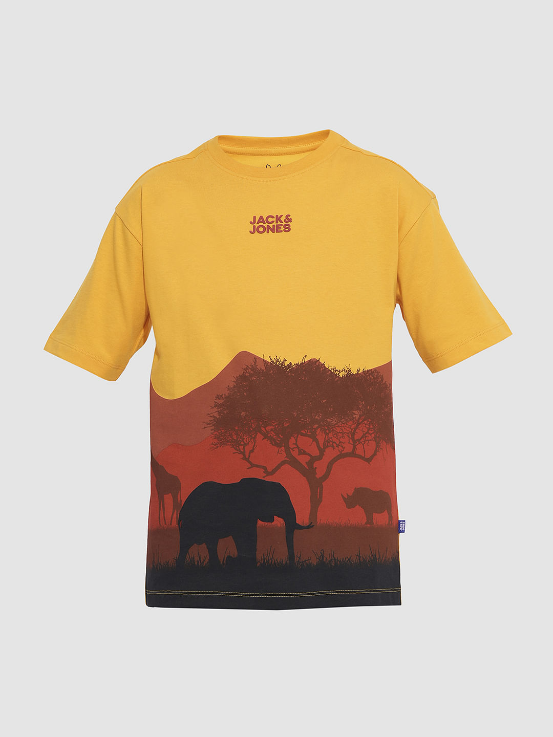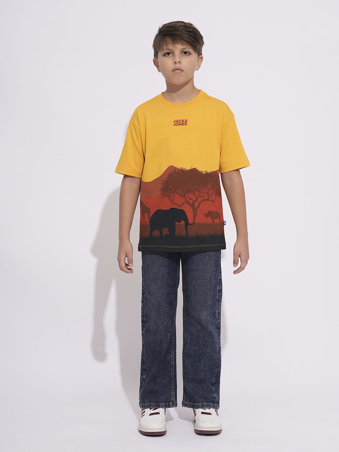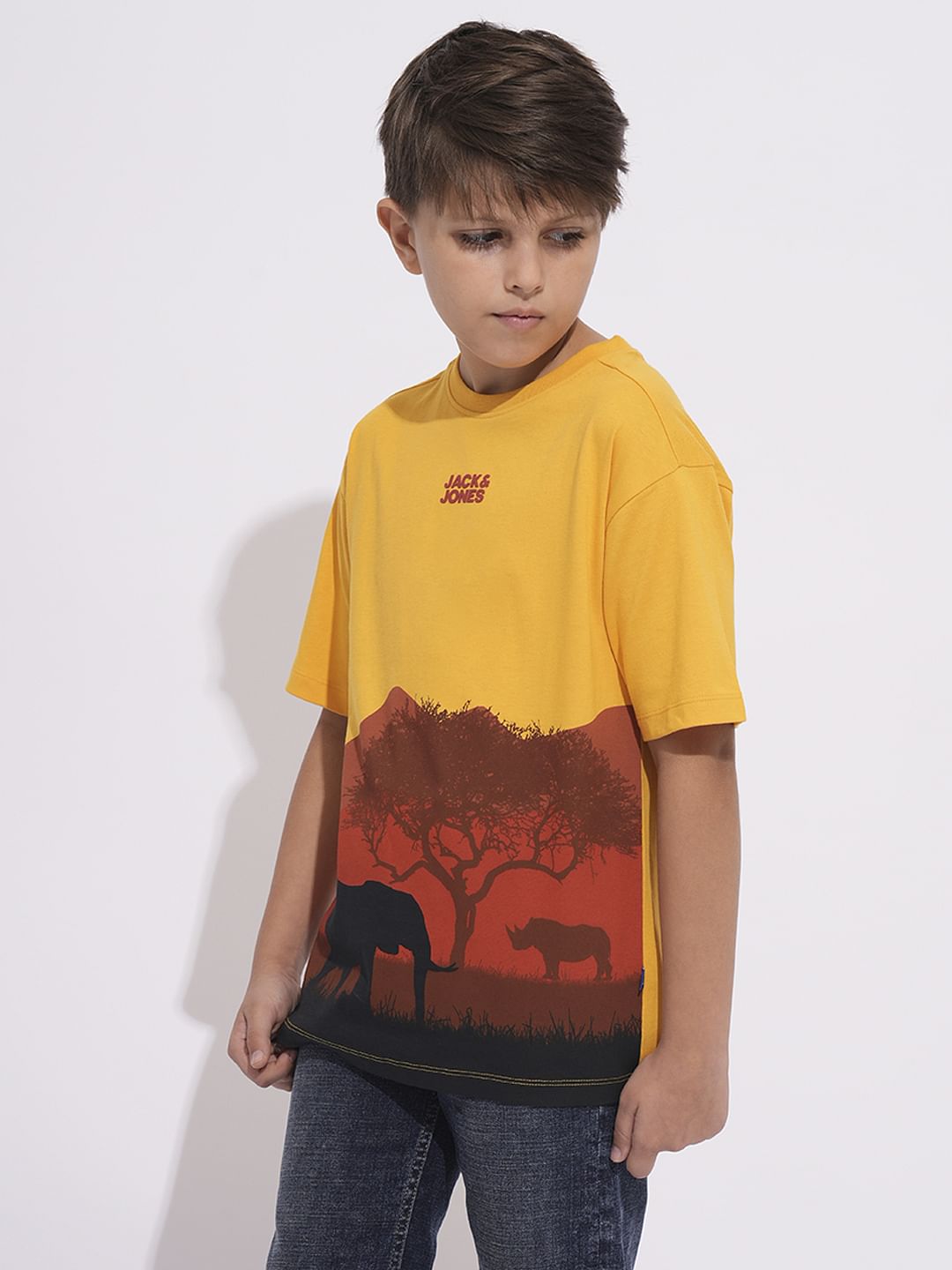 BOYS YELLOW FOREST SUNSET PRINT T-SHIRT