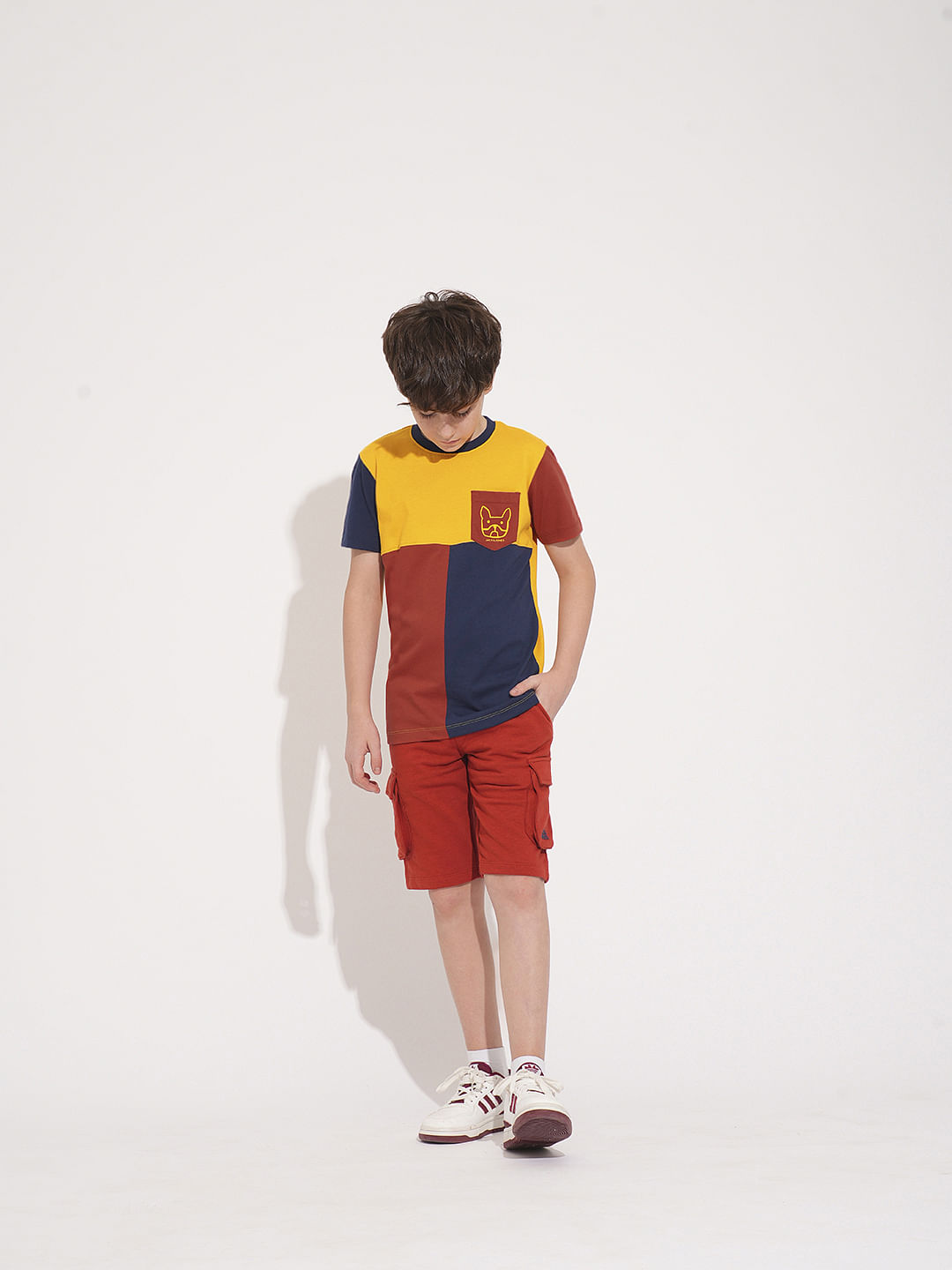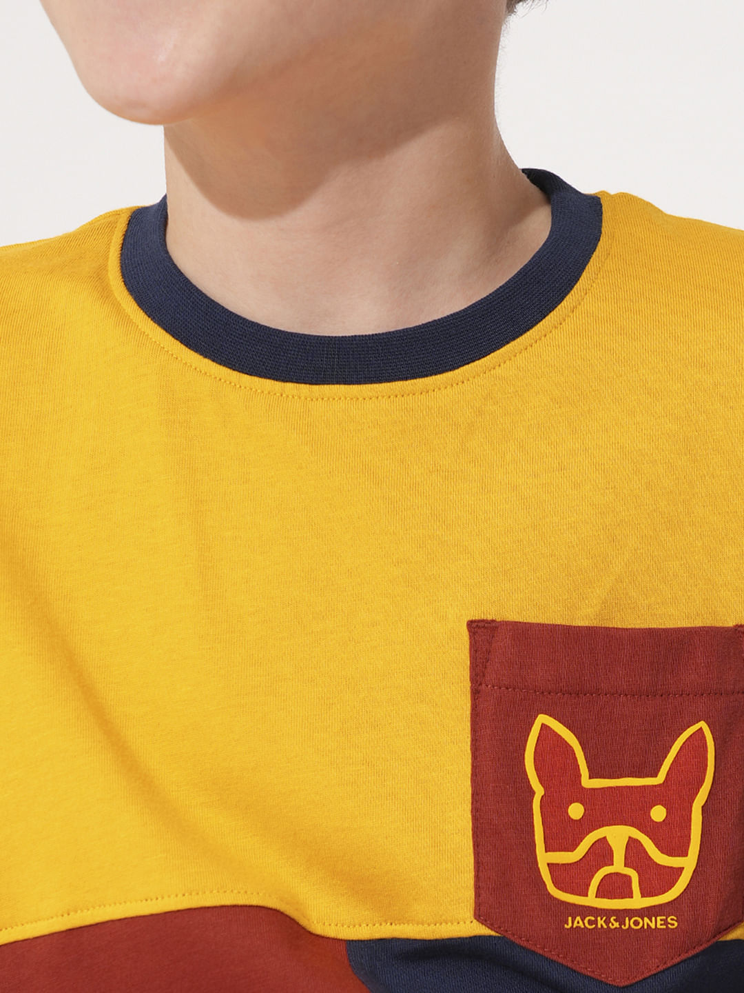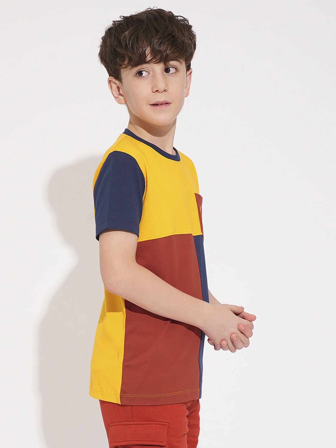 BOYS YELLOW COLOURBLOCKED T-SHIRT