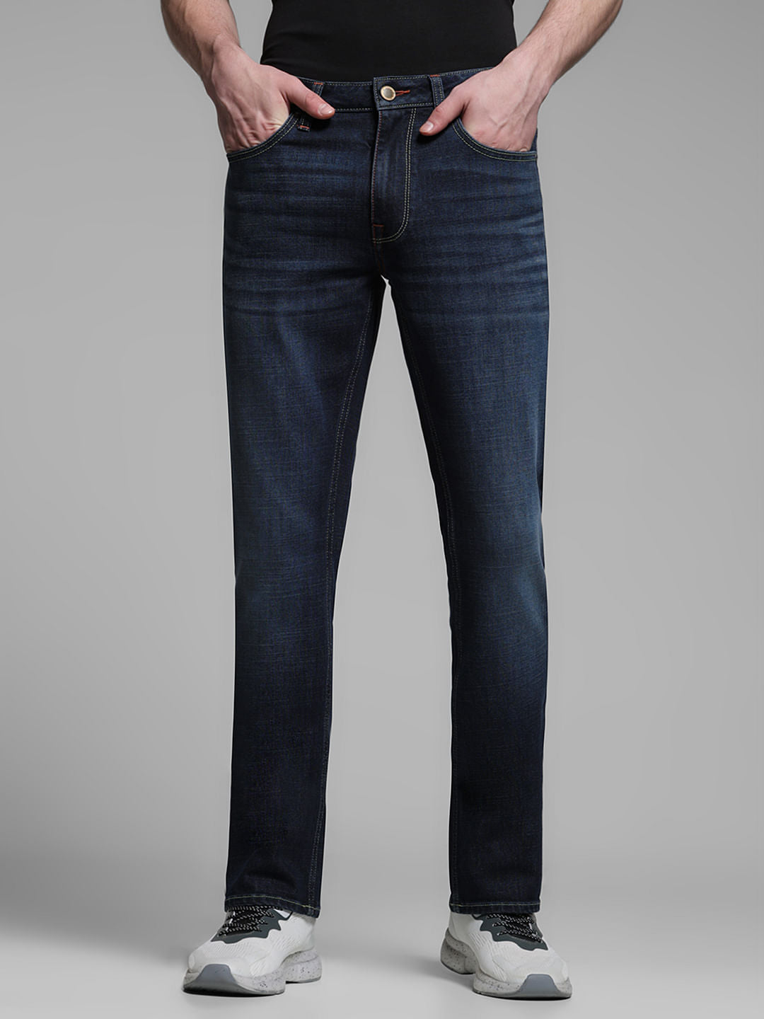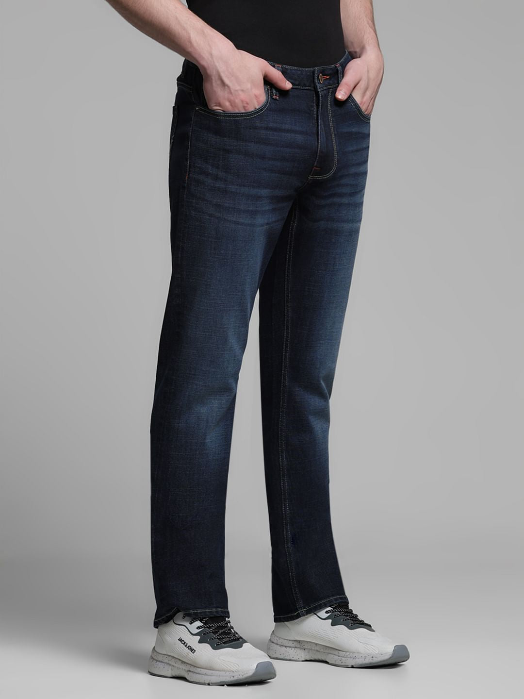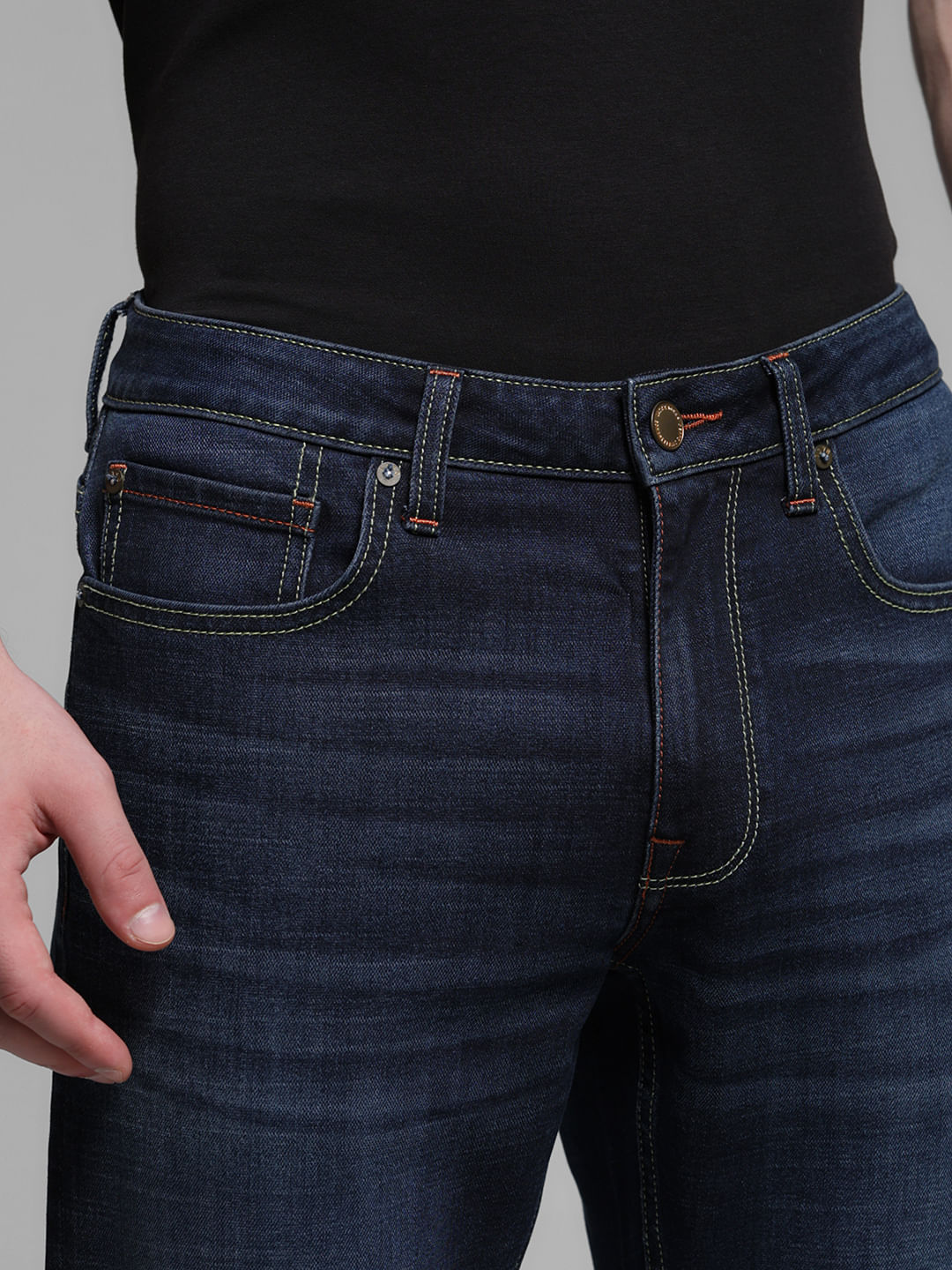 DARK BLUE LOW RISE CLARK REGULAR FIT JEANS