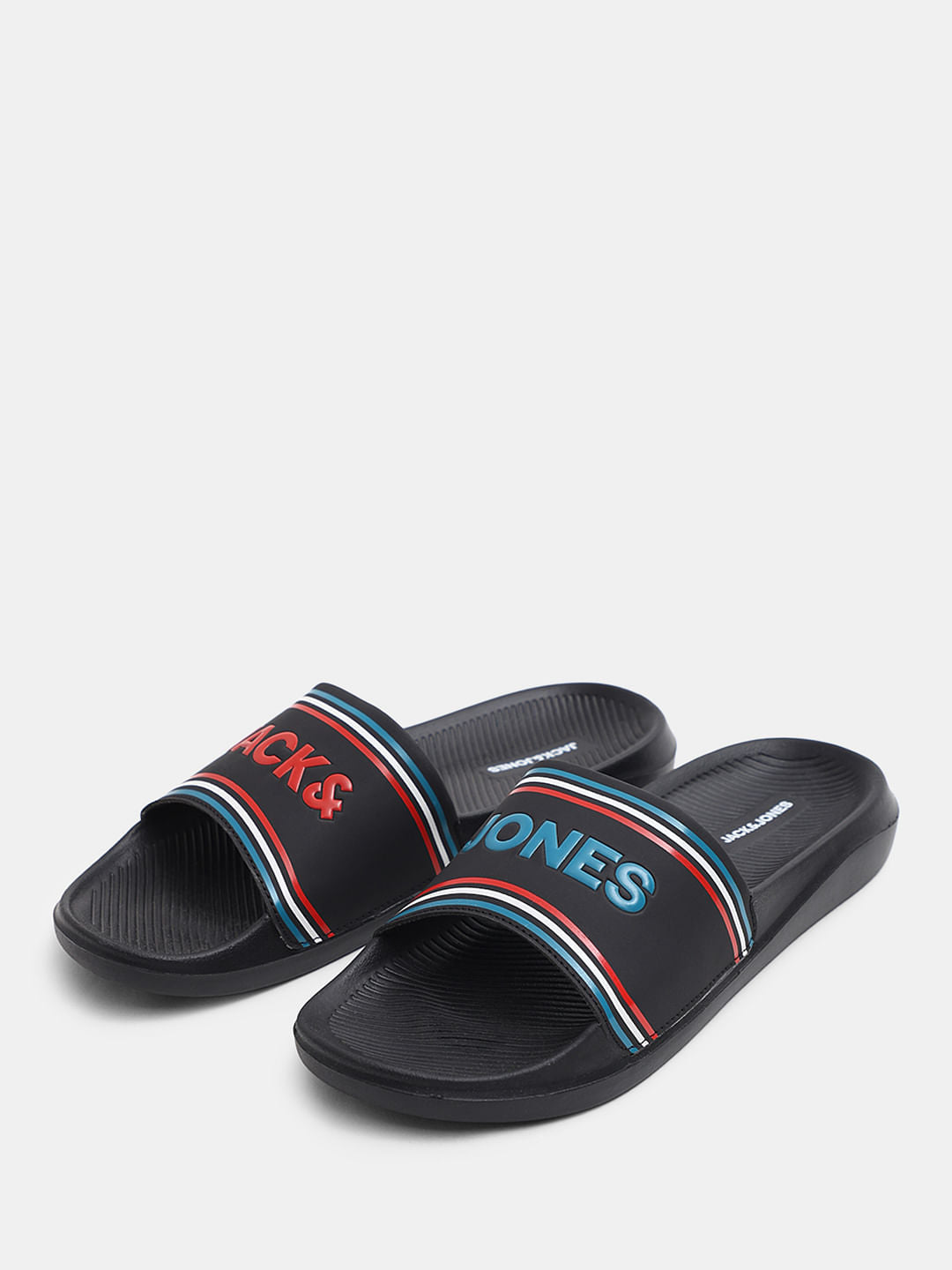 Black Multicolour Logo Print Pool Sliders