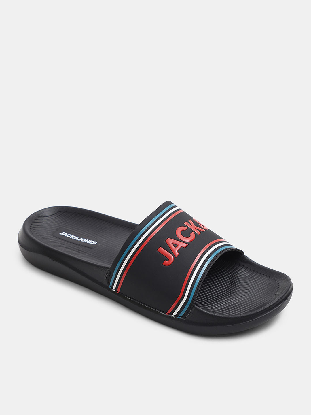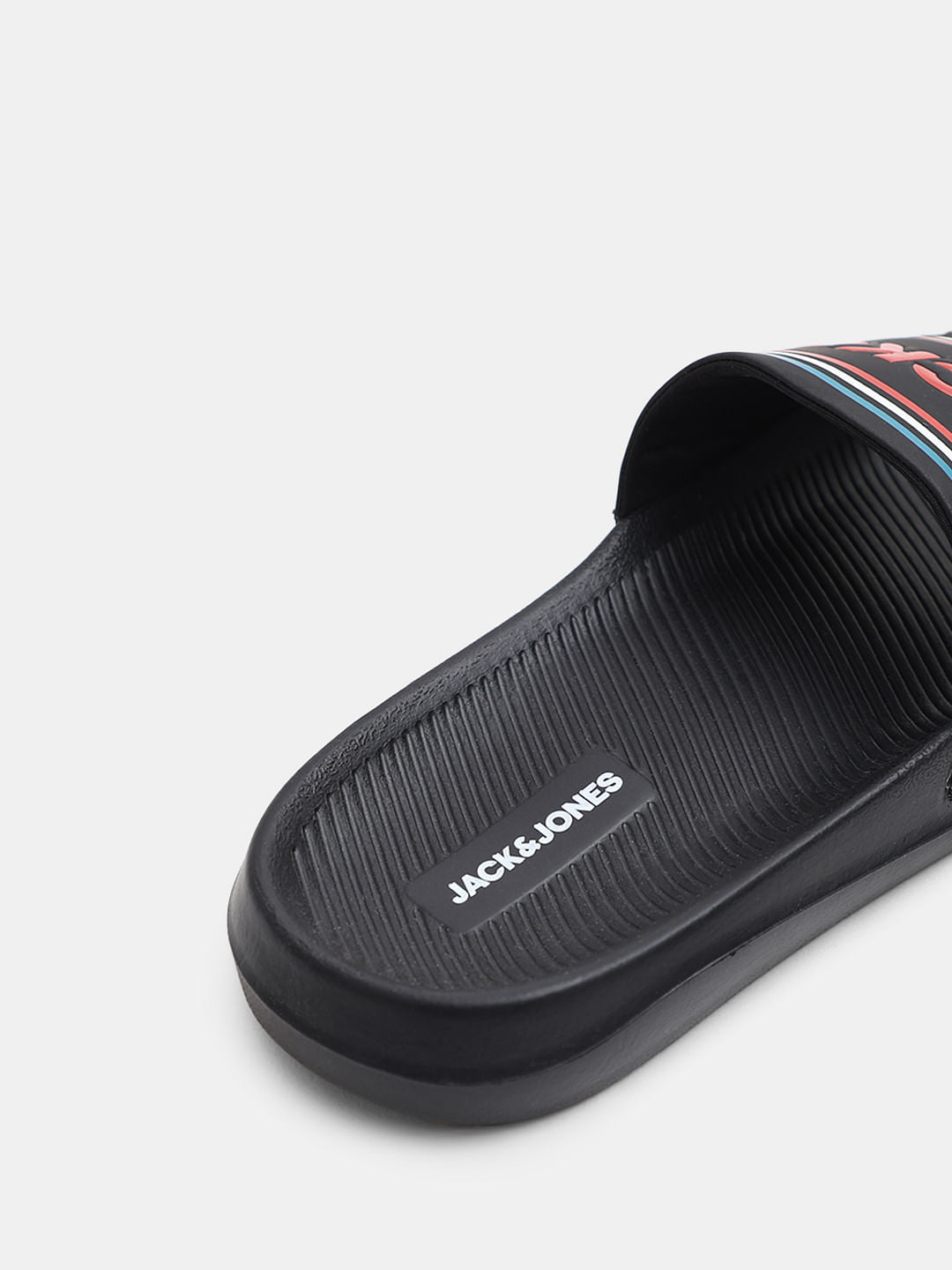 BLACK MULTICOLOUR LOGO PRINT POOL SLIDERS