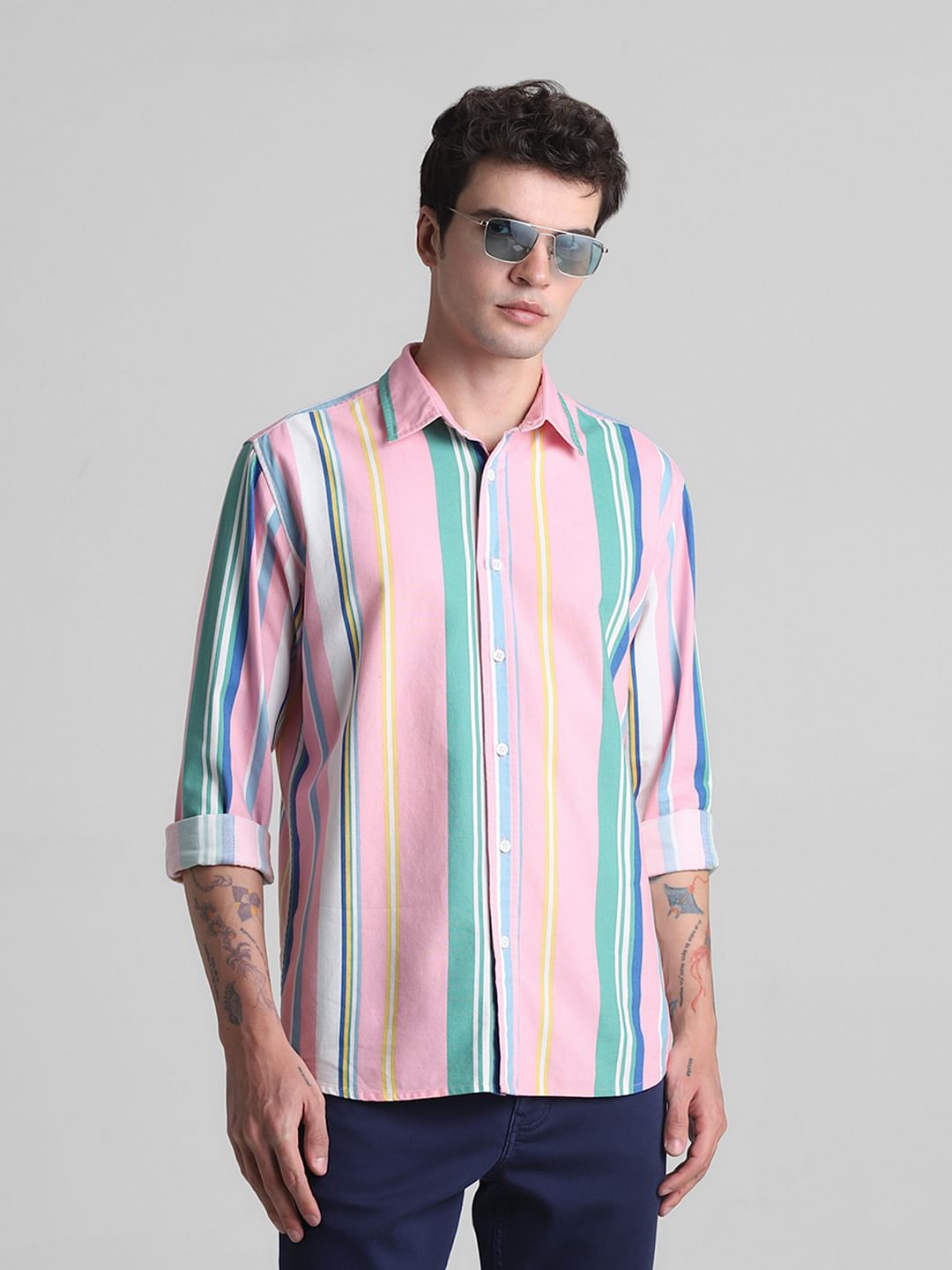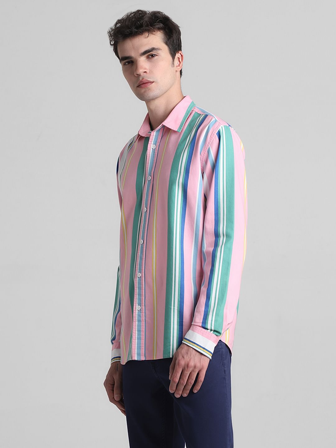 PINK STRIPED FULL SLEEVES SHIRT