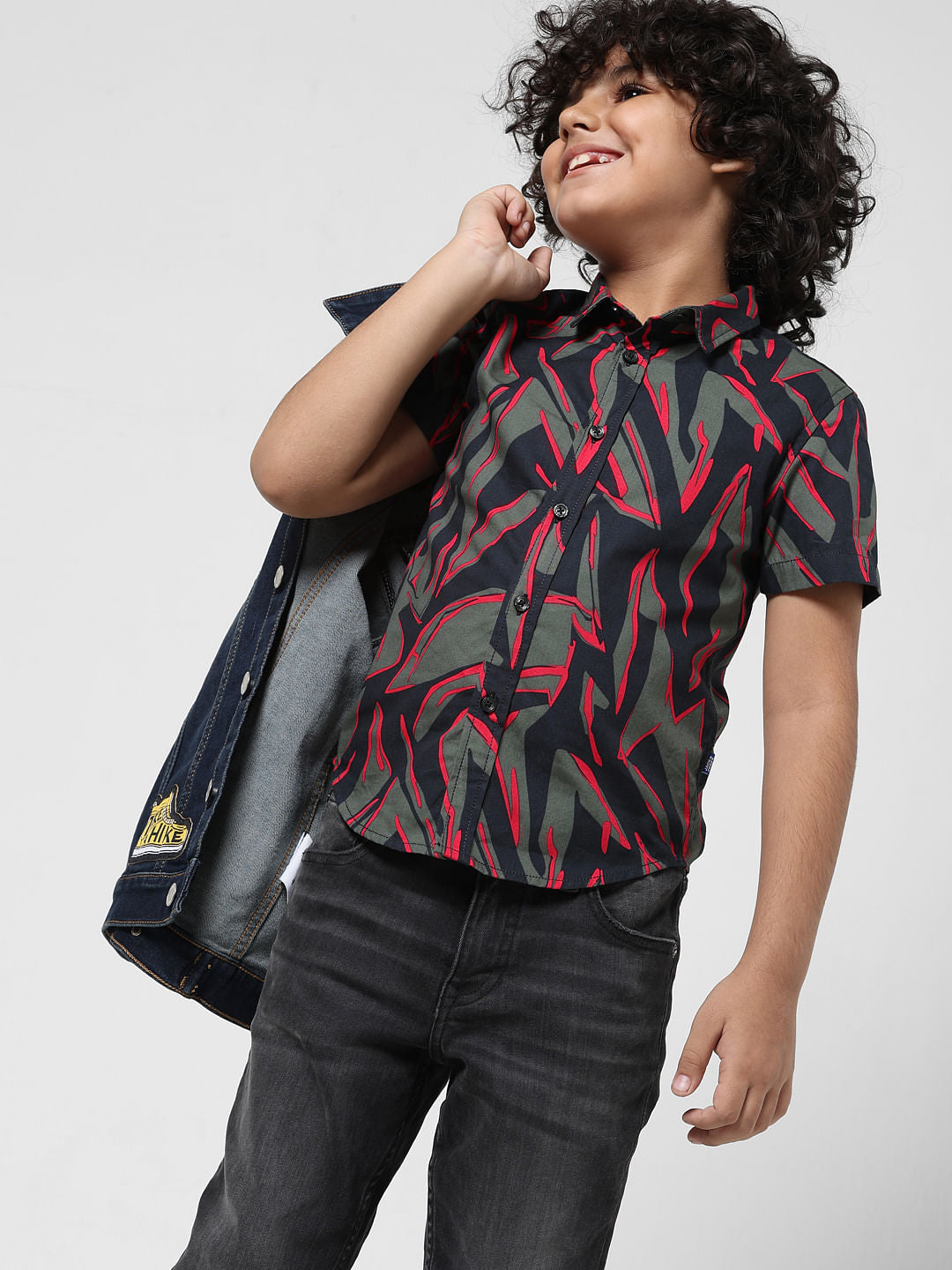 JUNIOR BOYS BLUE SPACE PRINT FULL SLEEVES SHIRT