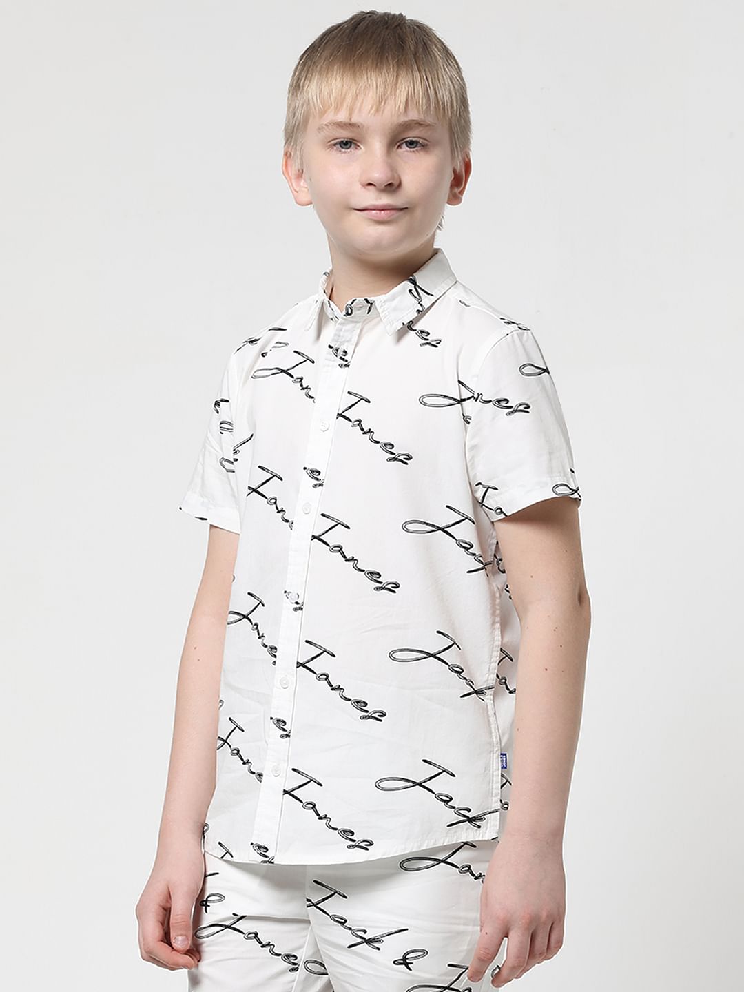 BOYS WHITE LOGO PRINT SHORT SLEEVES SHIRT Sale price₹974 ₹1,499 35% OFF