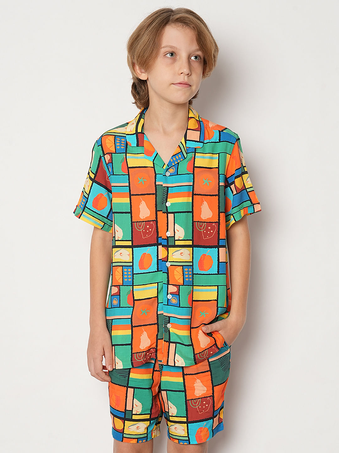 BOYS ORANGE ART PRINT CO-ORD SET SHIRT Sale price₹899 ₹1,799 50% OFF