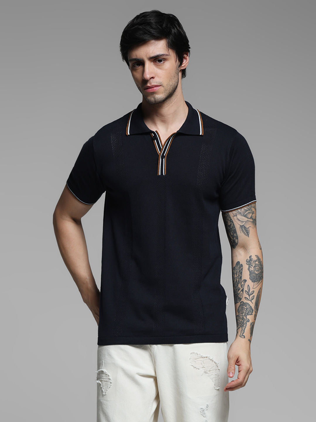 BLACK CONTRAST PLACKET KNITTED POLO Sale price₹1,374 ₹2,499 45% OFF