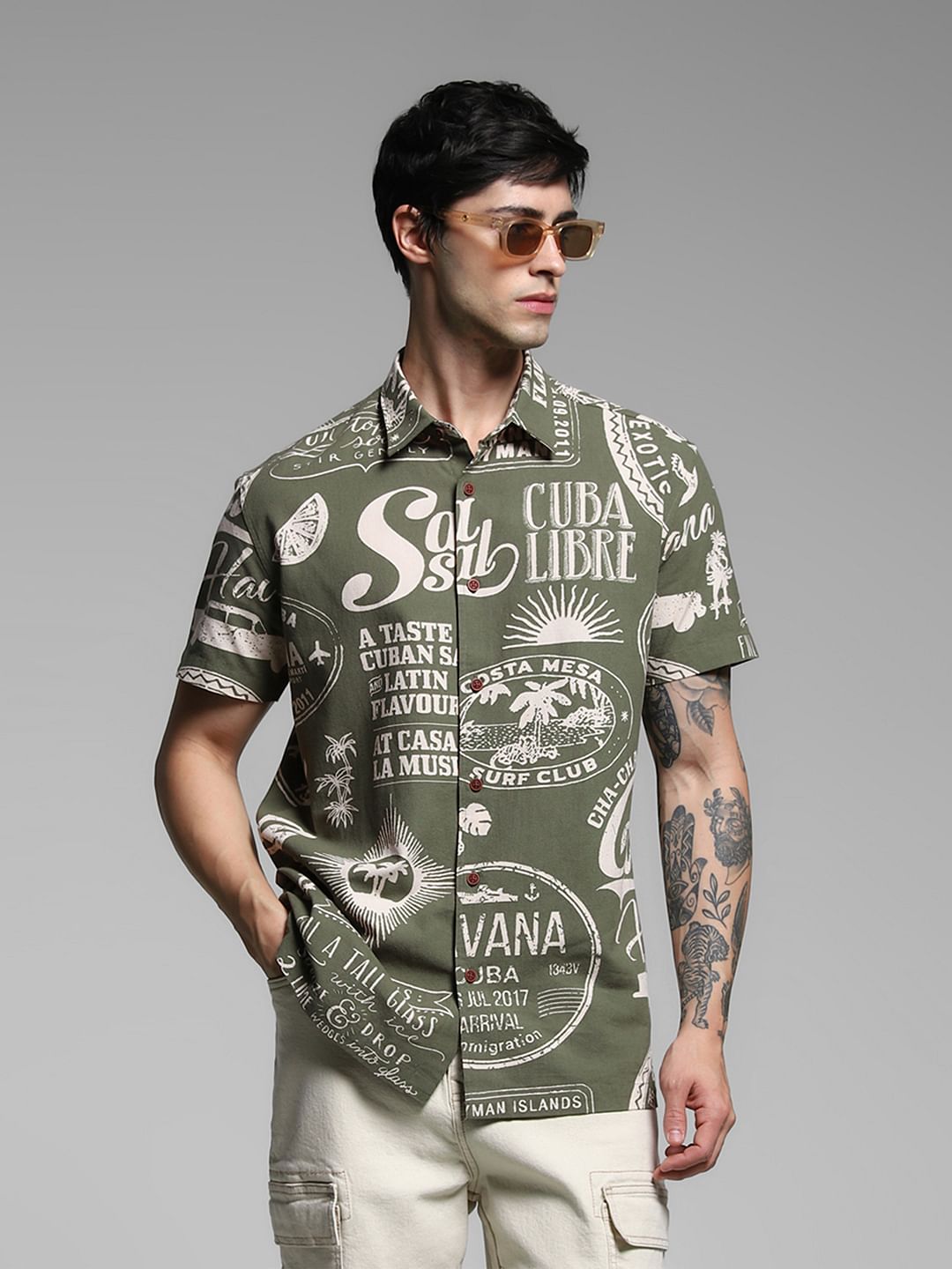 Dull Yellow Graphic Print Comfort Fit Shirt