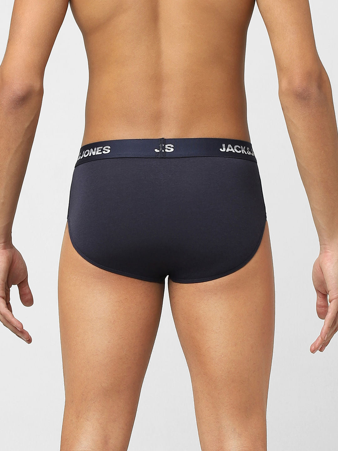Men's navy blue briefs made from bamboo viscose fabric. Features logo branding on the waistband.