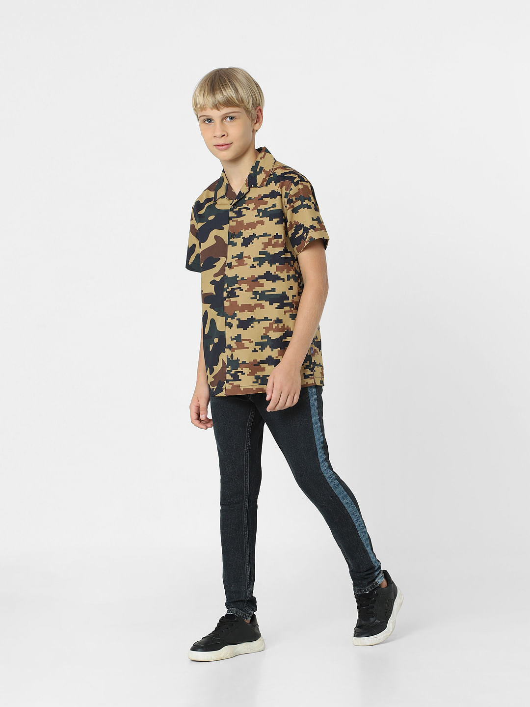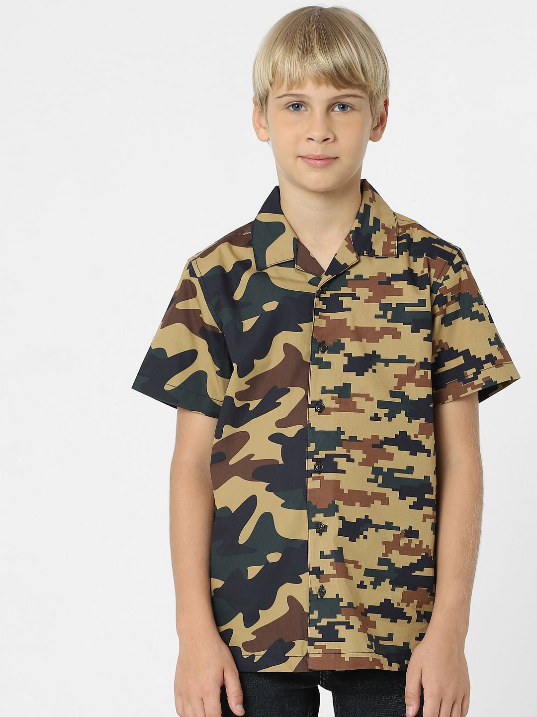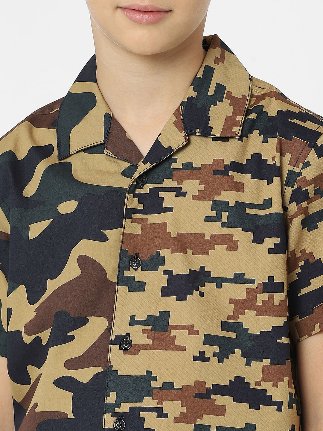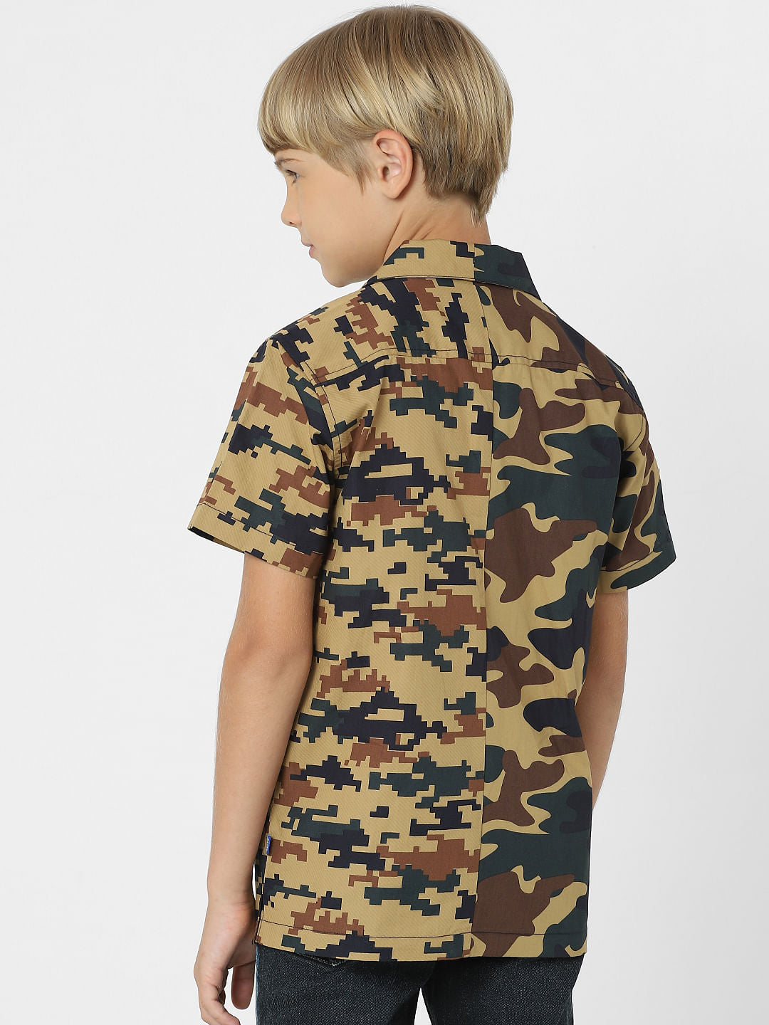 BOYS BROWN CAMO PRINT SHORT SLEEVES SHIRT
