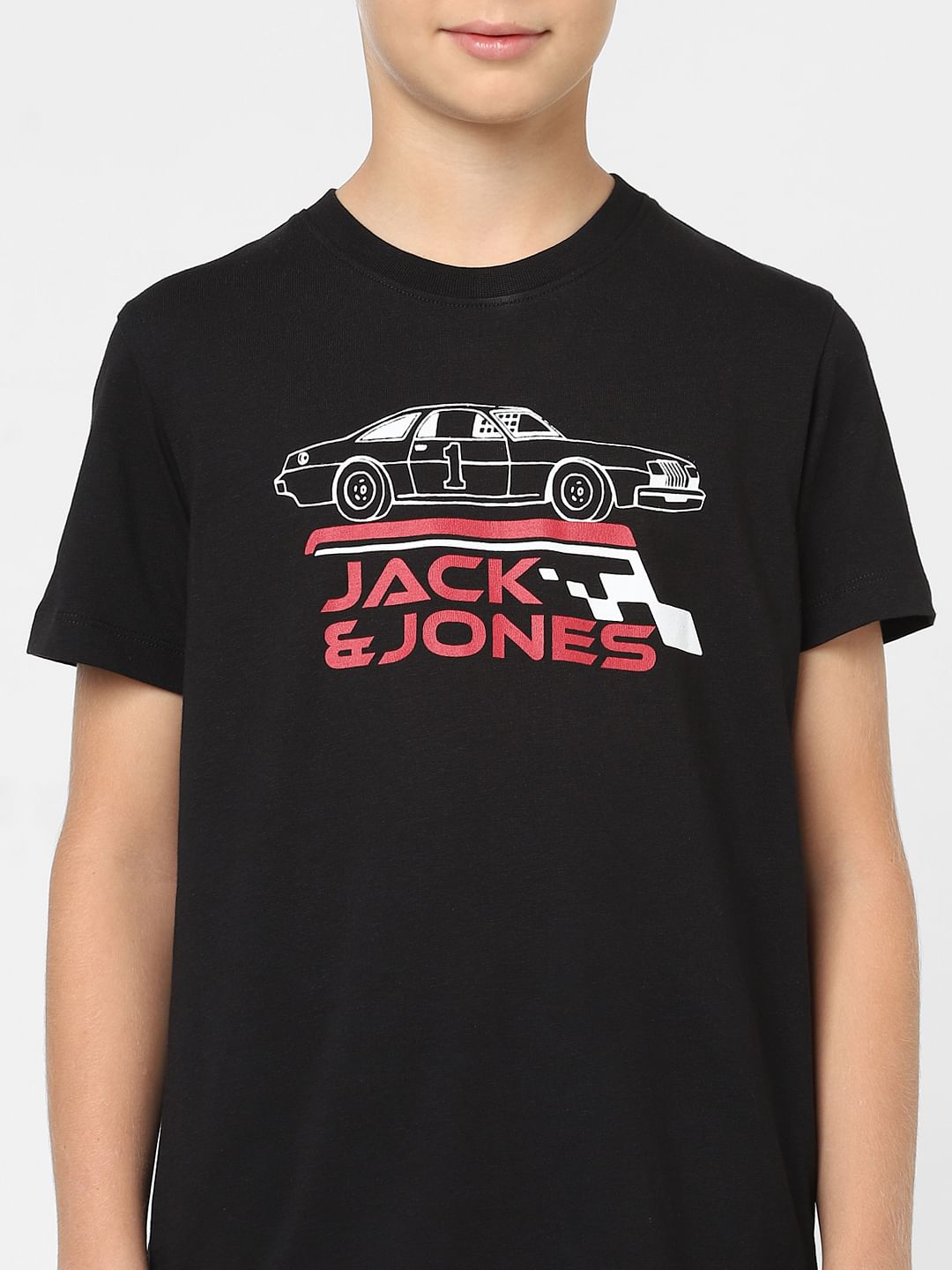 BOYS BLACK PRINTED CREW NECK T-SHIRT