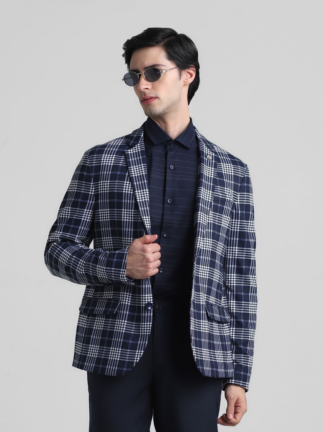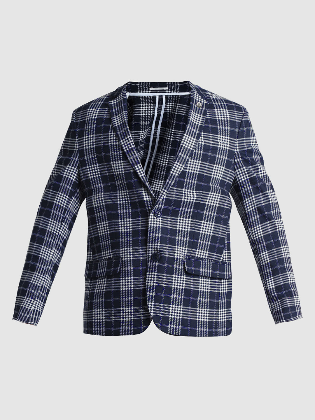 Unleash your suave side with our Men's Premium Tailored Blazer, an embodiment of modern sophistication. Flaunting a check print that effortlessly bridges the gap between classic and contemporary, this blazer features a sharp notched lapel collar, a sleek double-button closure, and functional welt pockets for that extra dash of utility. Cut in a slim fit, it's your ticket to a silhouette that demands attention. The full sleeves add a touch of refinement, while the high-quality stretch fabric ensures comfort without compromising on style.
