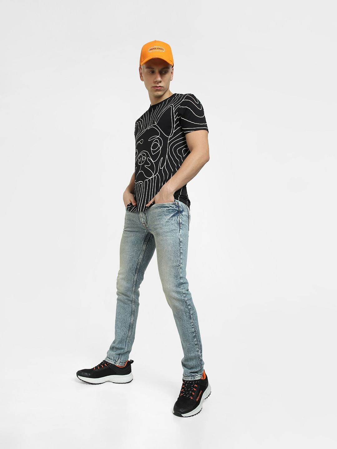 Men's low rise slim fit jeans in a washed effect. Features classic front & back pockets and belt loops. Made from premium cotton-stretch fabric for a good fit. Perfect to wear with tees, casual shirts, sweatshirts, etc.