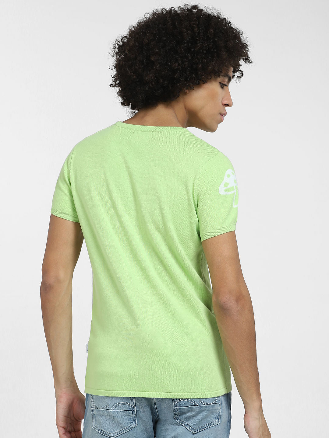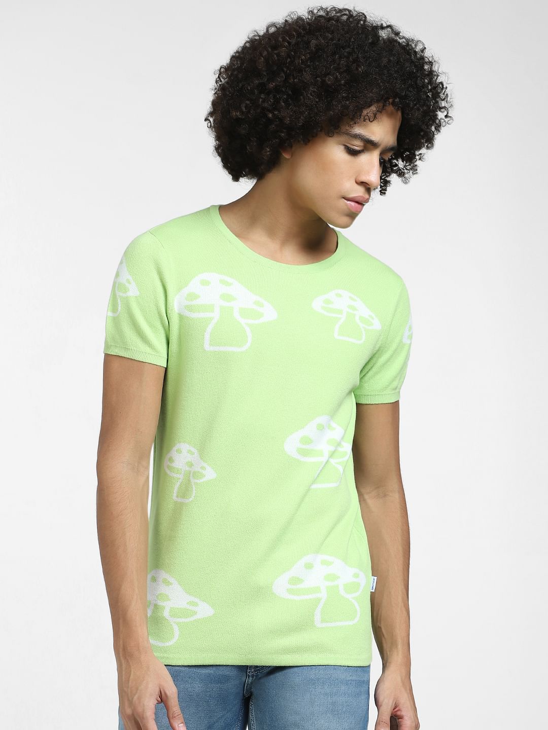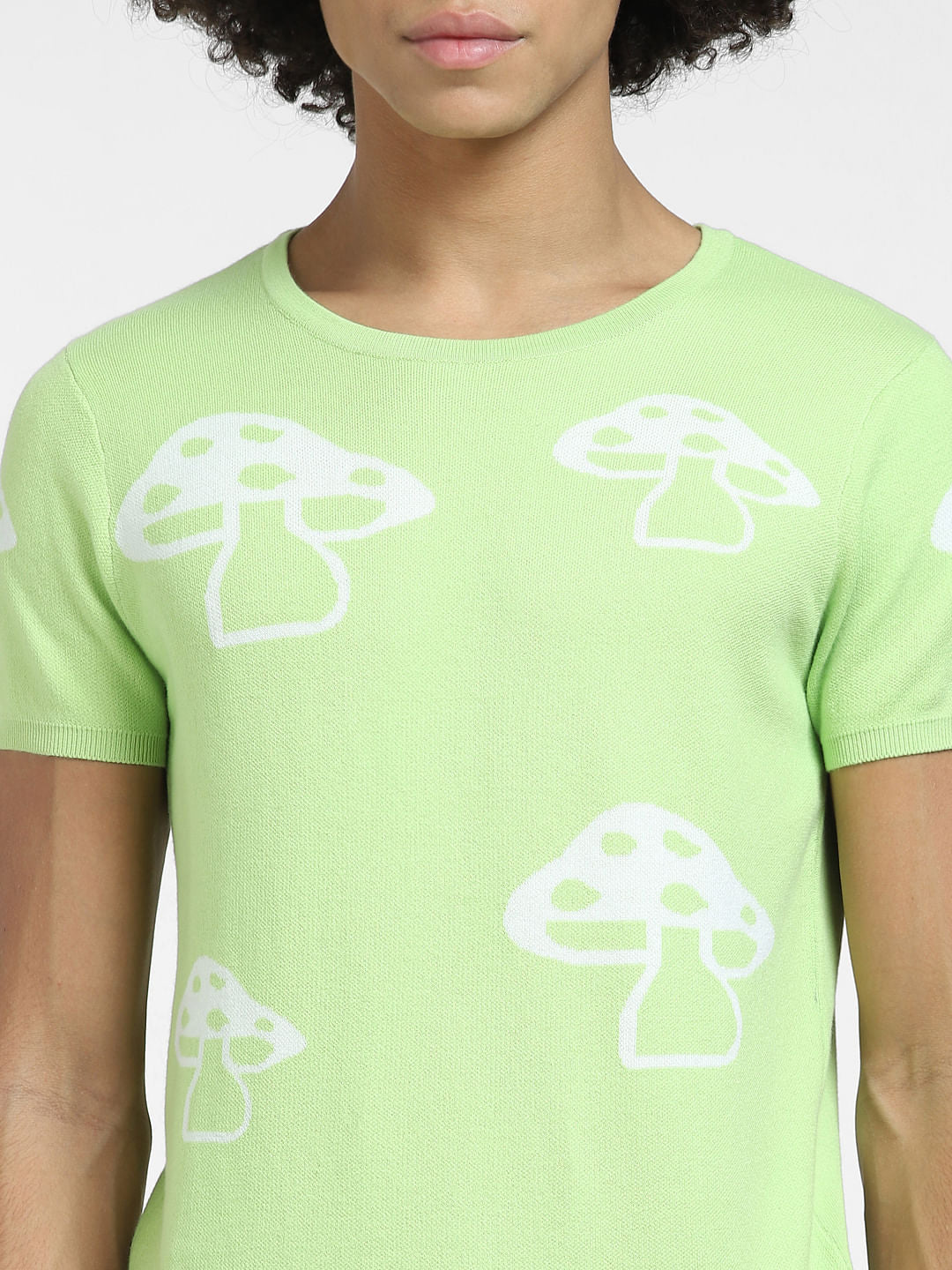 LIGHT GREEN PRINTED KNIT T-SHIRT