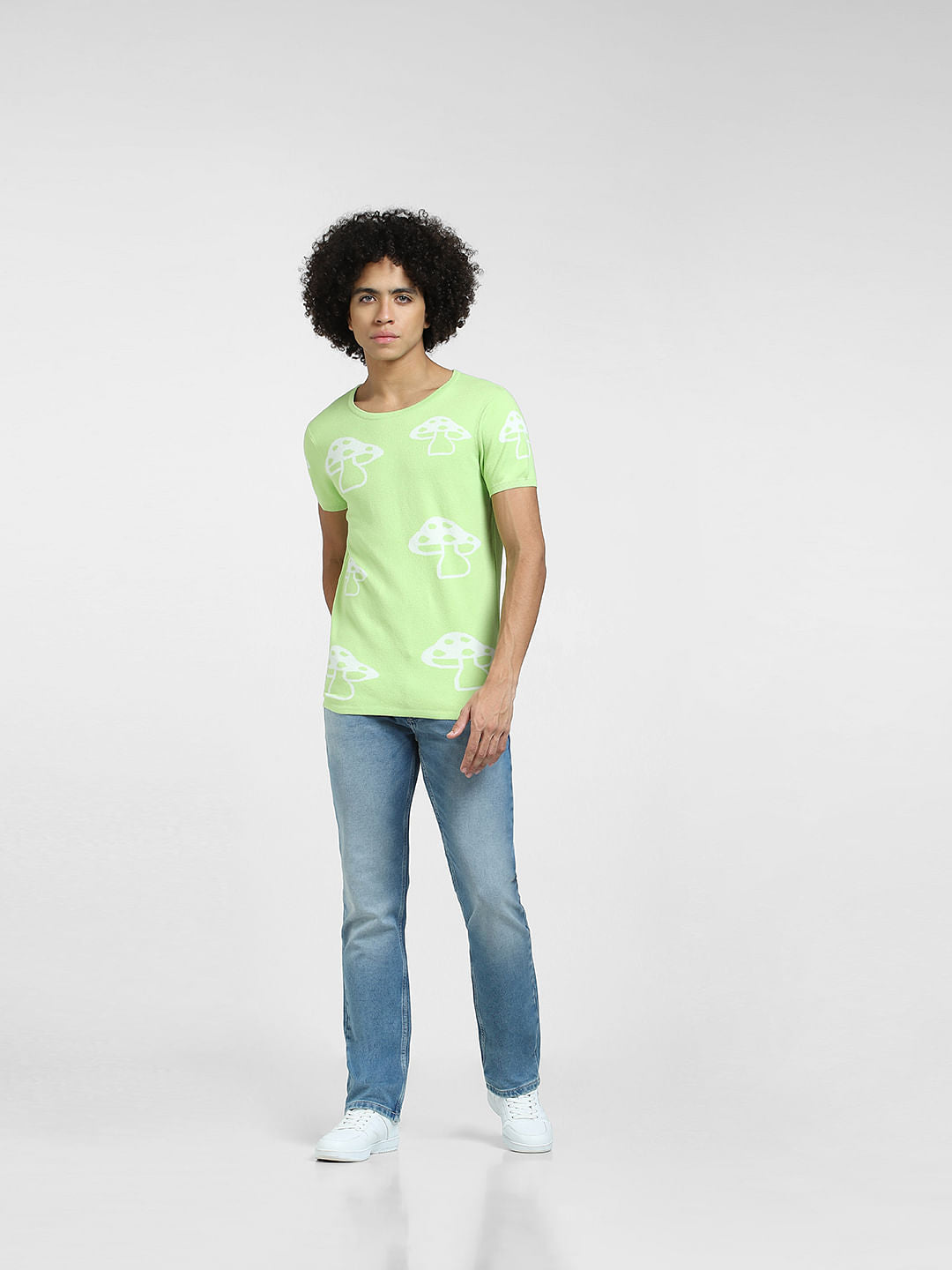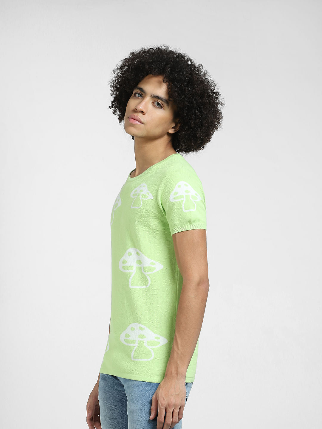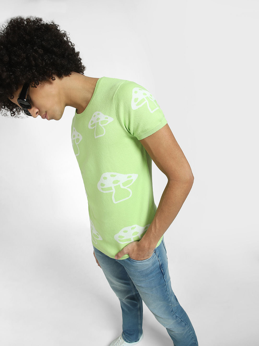 LIGHT GREEN PRINTED KNIT T-SHIRT