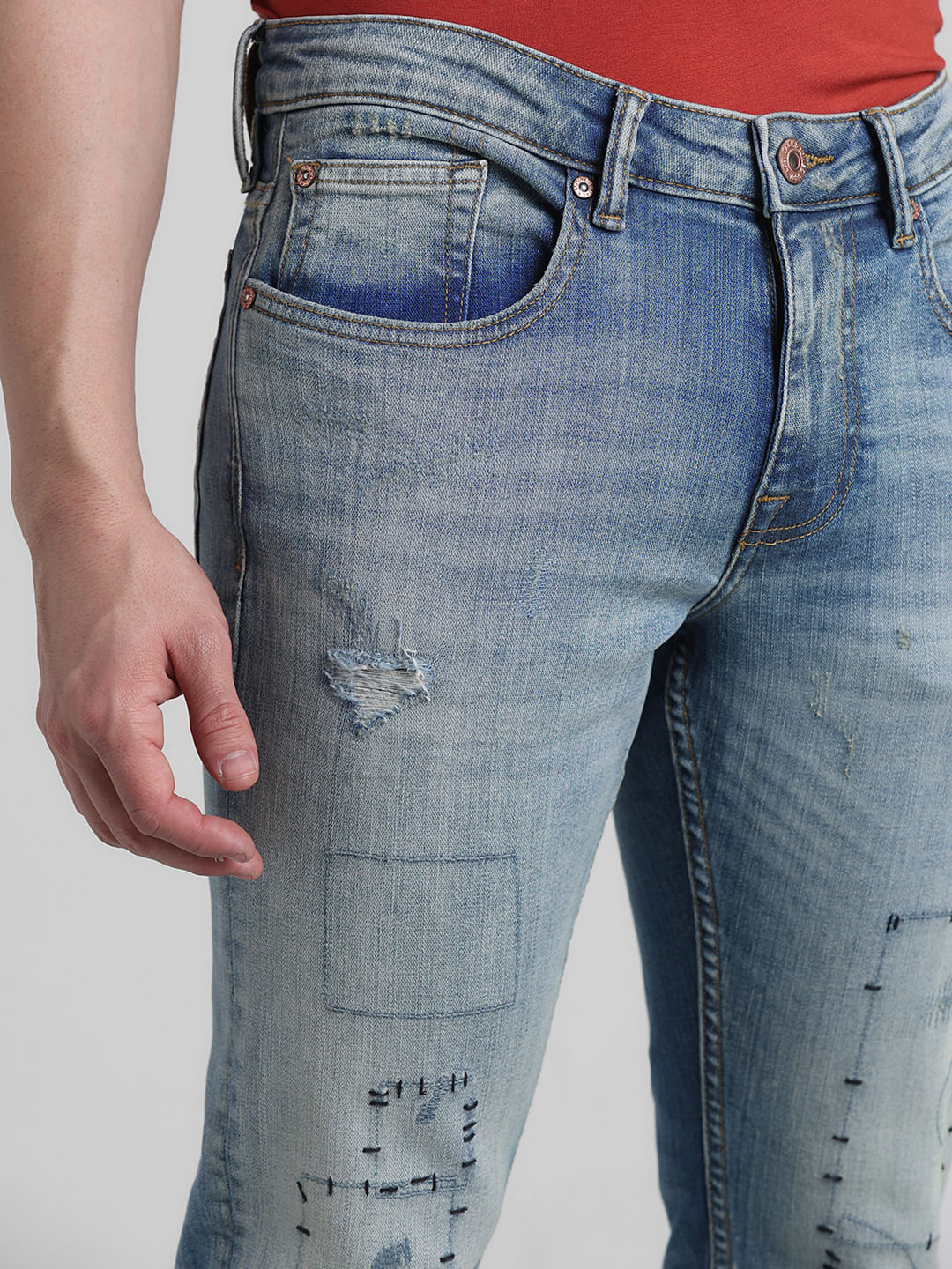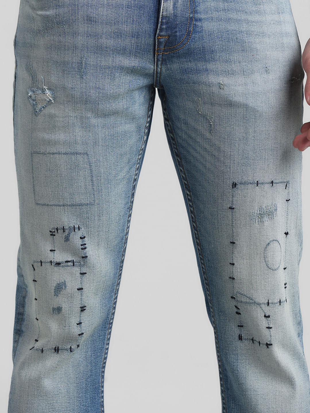 BLUE LOW RISE STITCH DETAIL SLIM JEANS