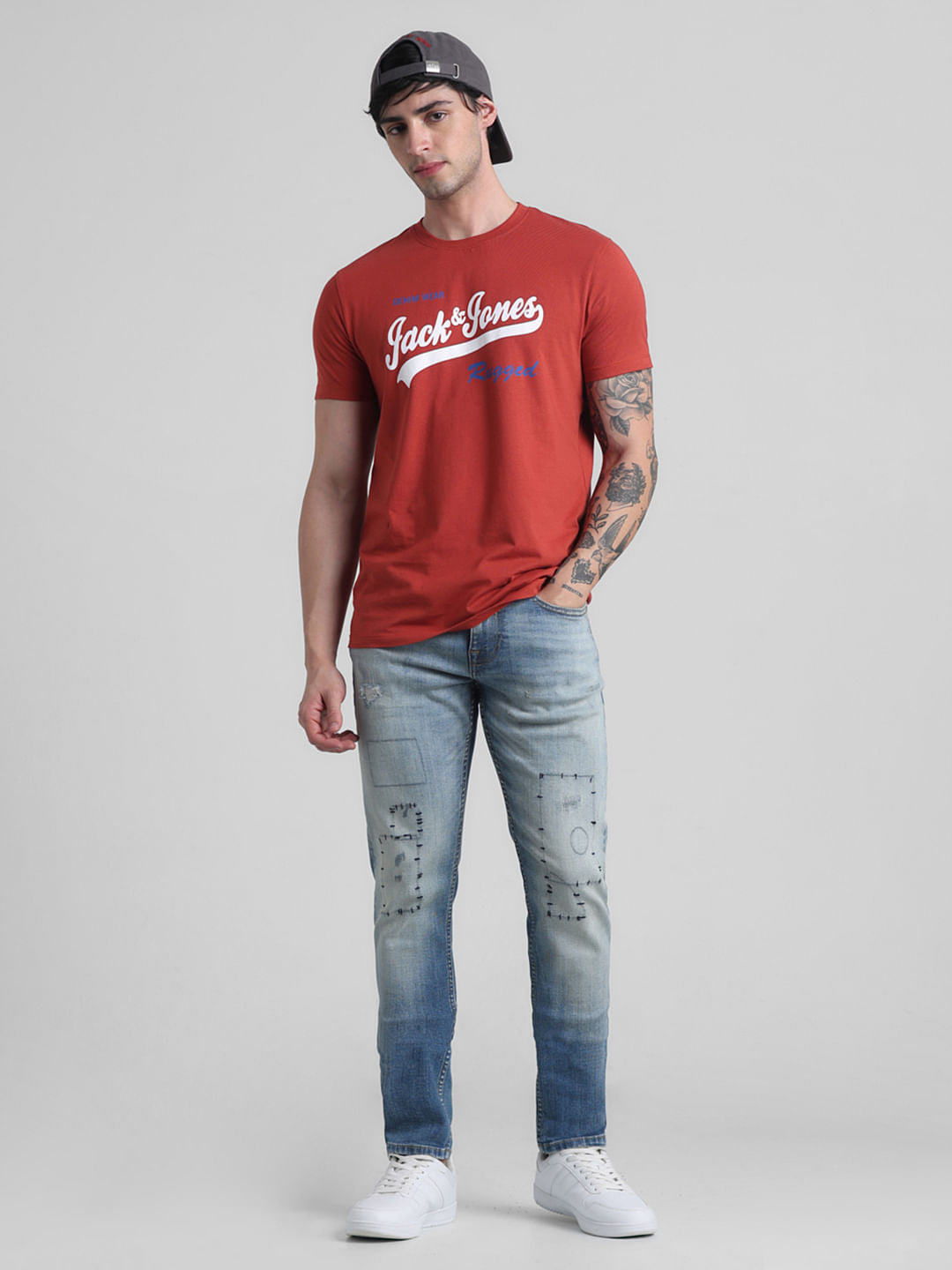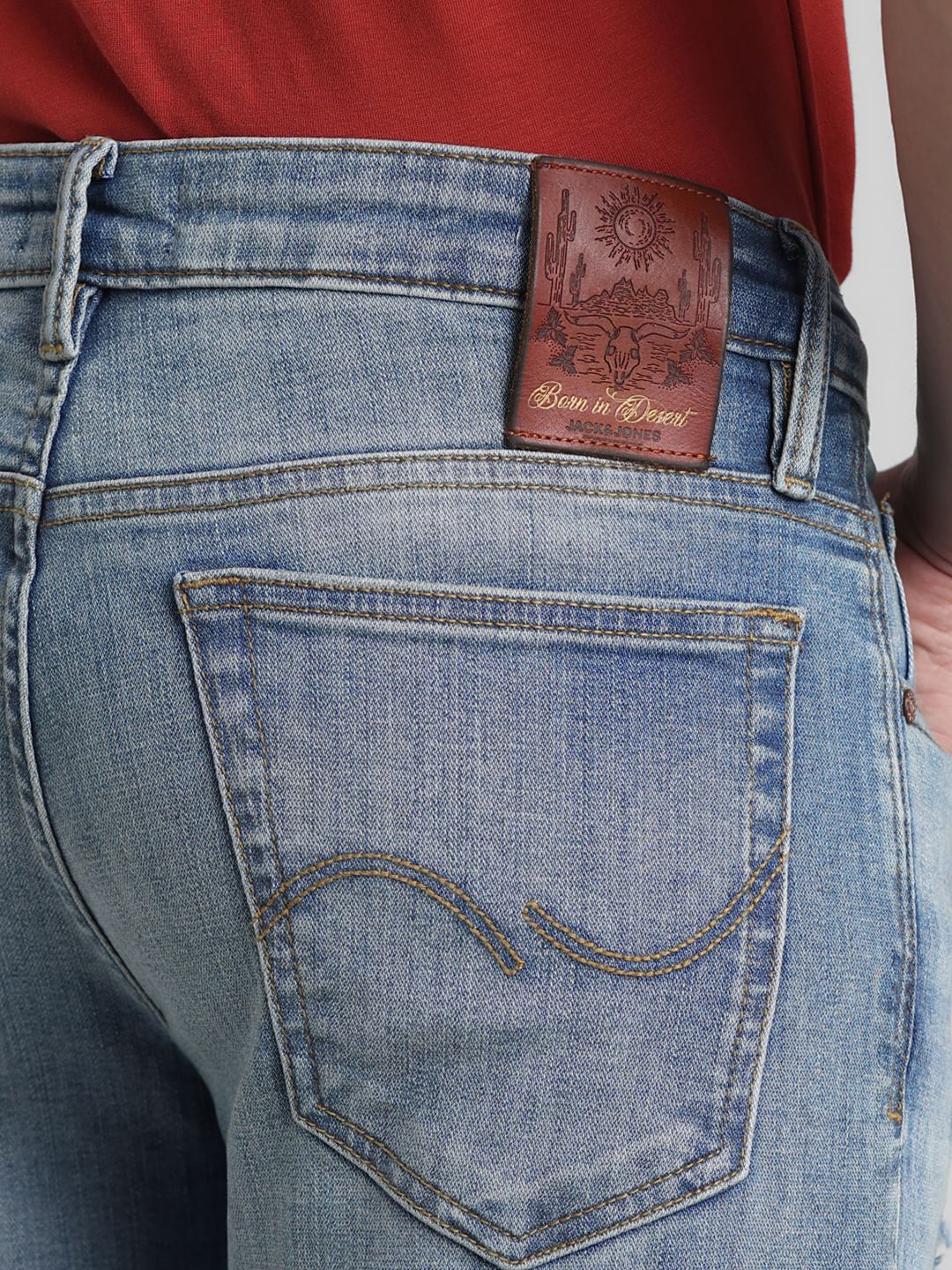 These JACK&JONES Slim Fit Jeans are the perfect addition to any wardrobe. The classic slim fit cut is flattering and timeless, while the durable cotton blend fabric ensures this piece will last for years to come. Feature a super edgy stitch detail on the front and an overall washed look for added edge. Has a 5 pocket detail, zip-button closure, belt loops, and badge detailing on back. Style these jeans with a crisp button-down shirt and some loafers for a modern, put-together look that can be worn almost anywhere.