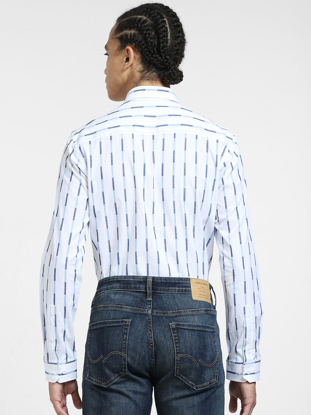 Men's 100% cotton full sleeves shirt rendered in a classic striped pattern. Style with jeans and sneakers for a smart-casual look!