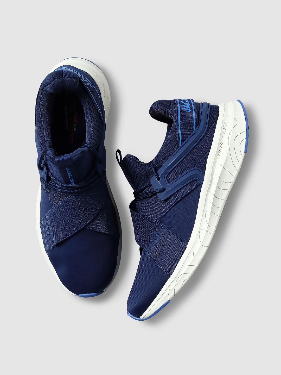 Blue sneakers with a flex sole that is comfortable and offers a good grip, blue branding, breathable lightweight mesh, and a lace-up closure.