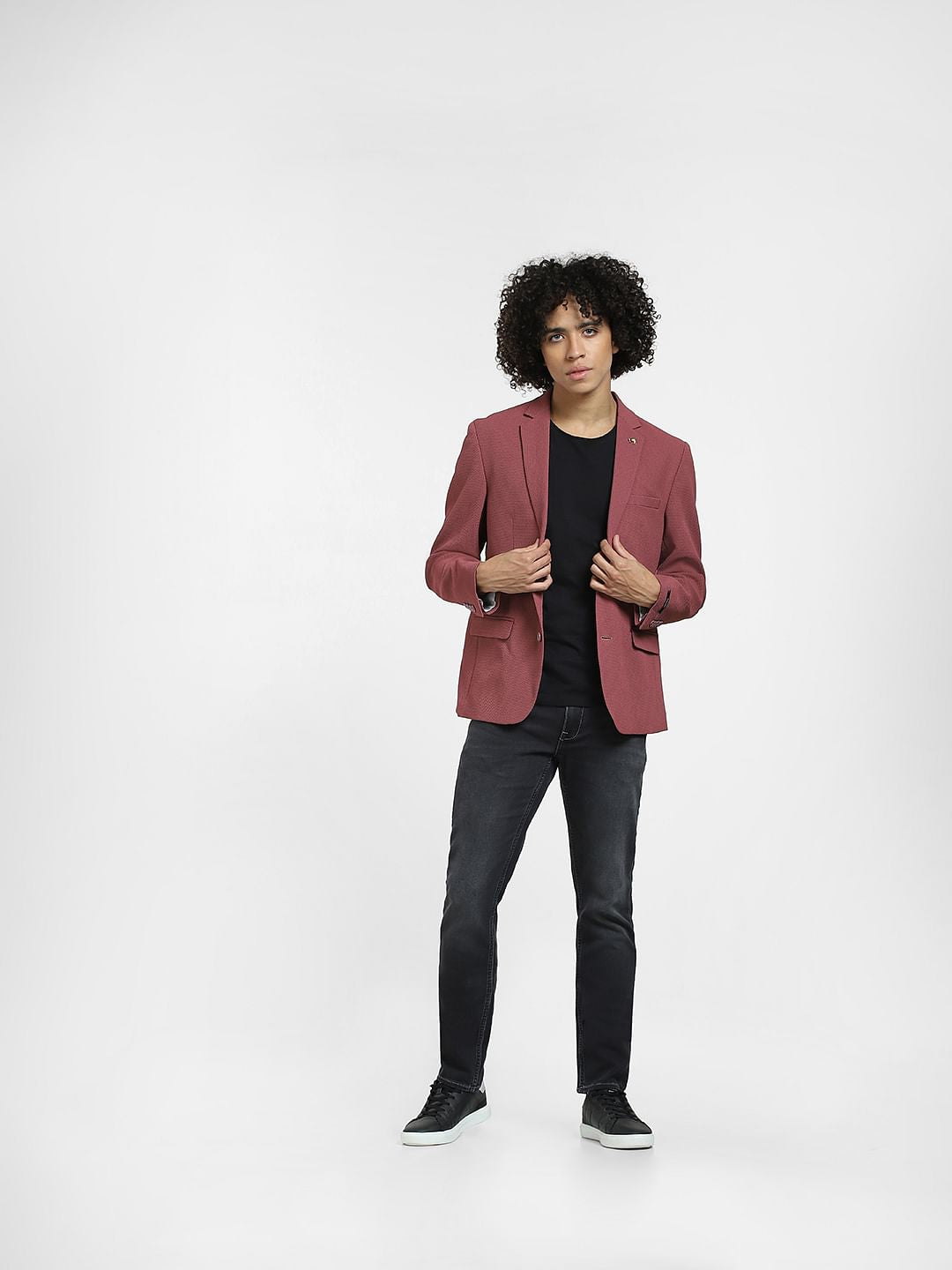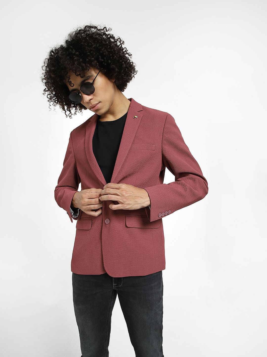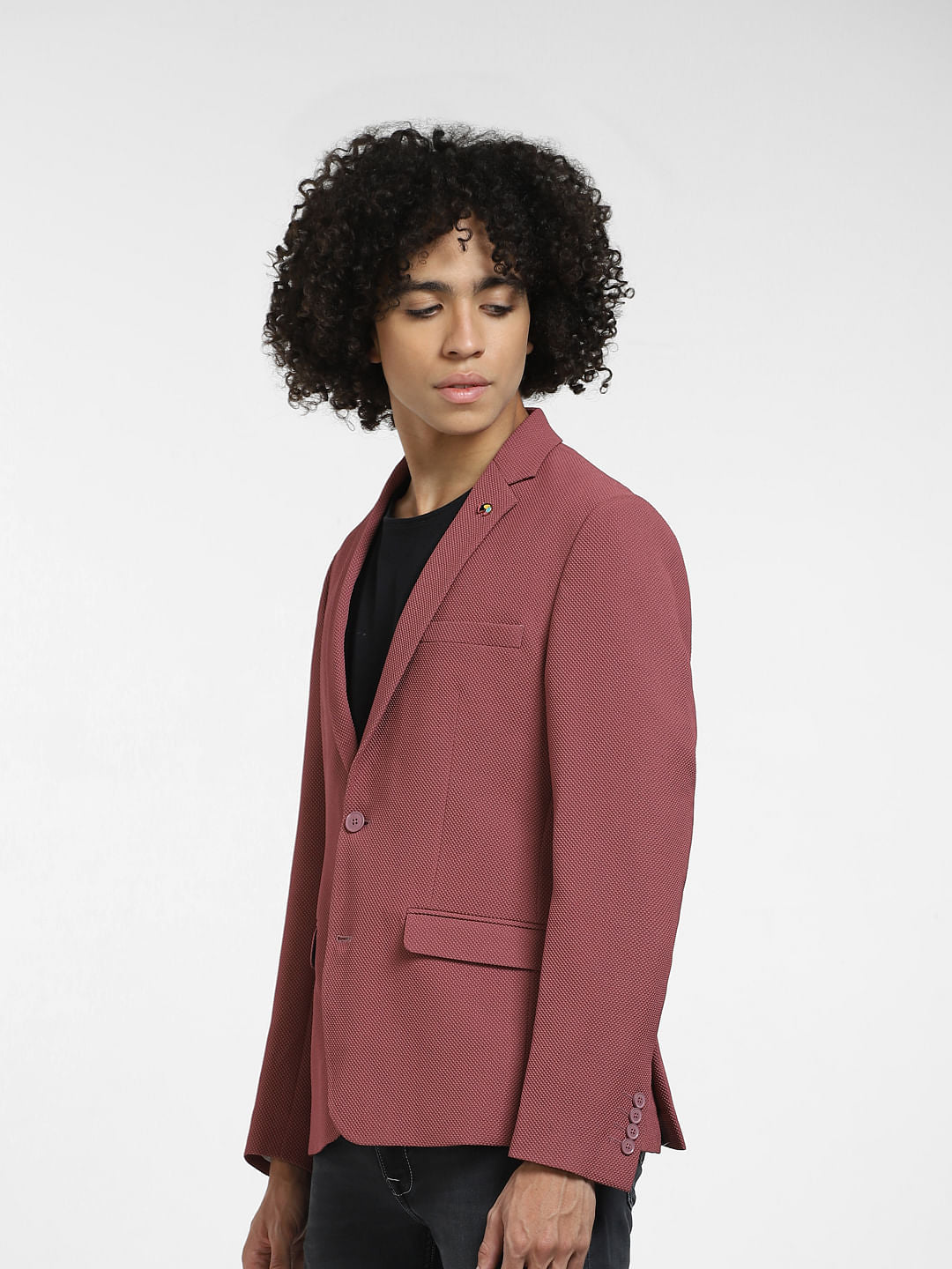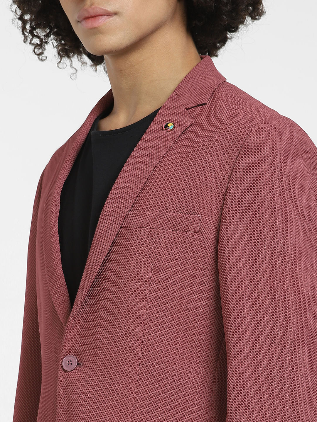 Mauve knitted blazer cut in a slim fit. Has a double button closure with 2 front pockets with flaps and a notched lapel collar.