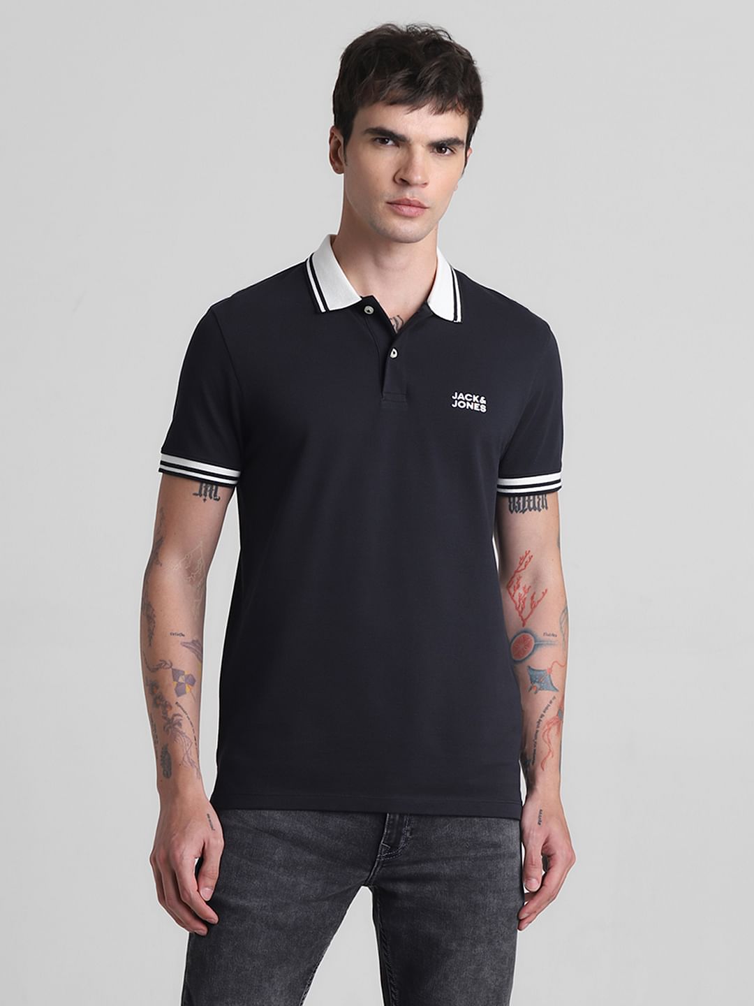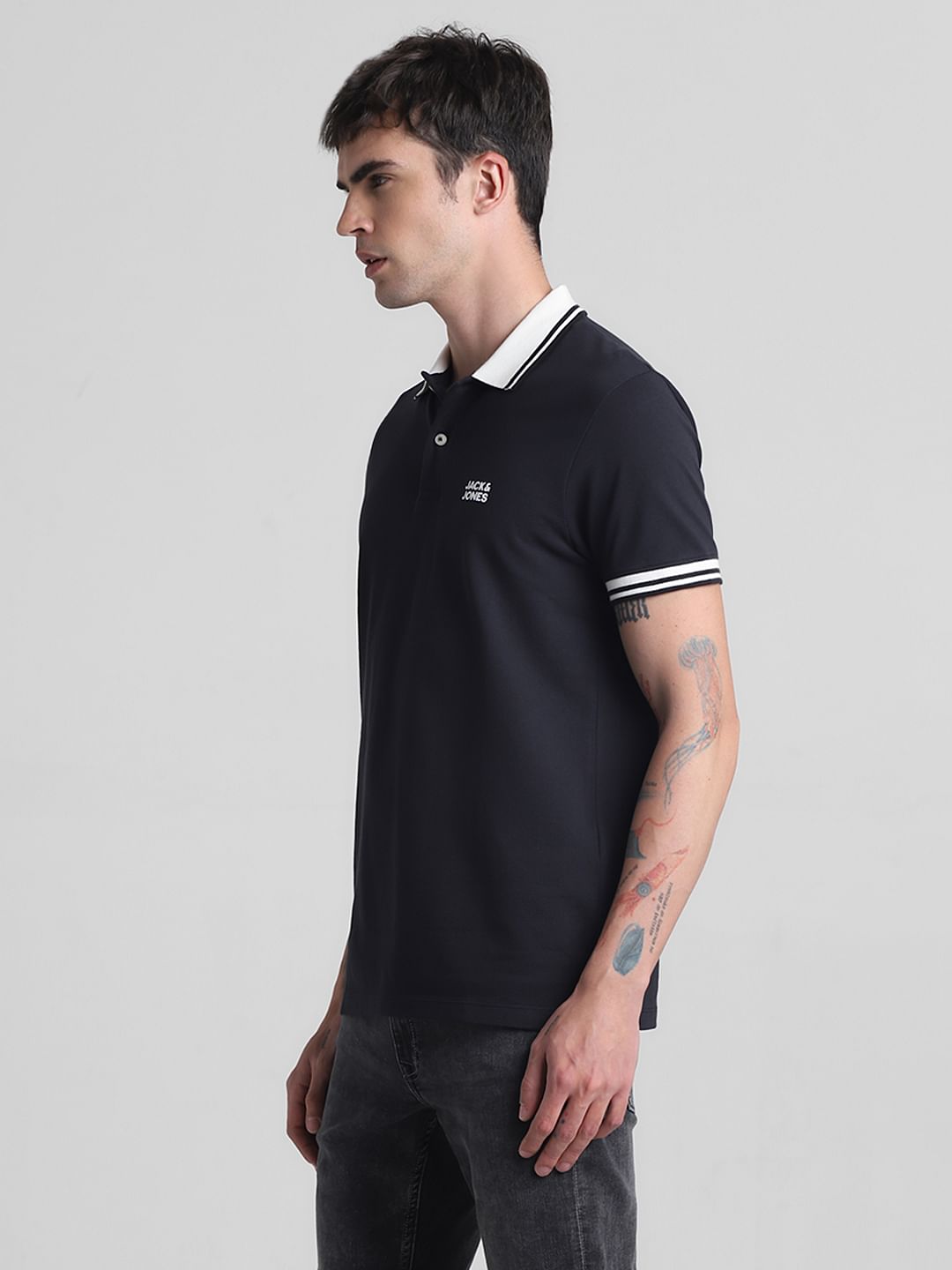 BLACK CONTRAST TIPPING POLO T-SHIRT