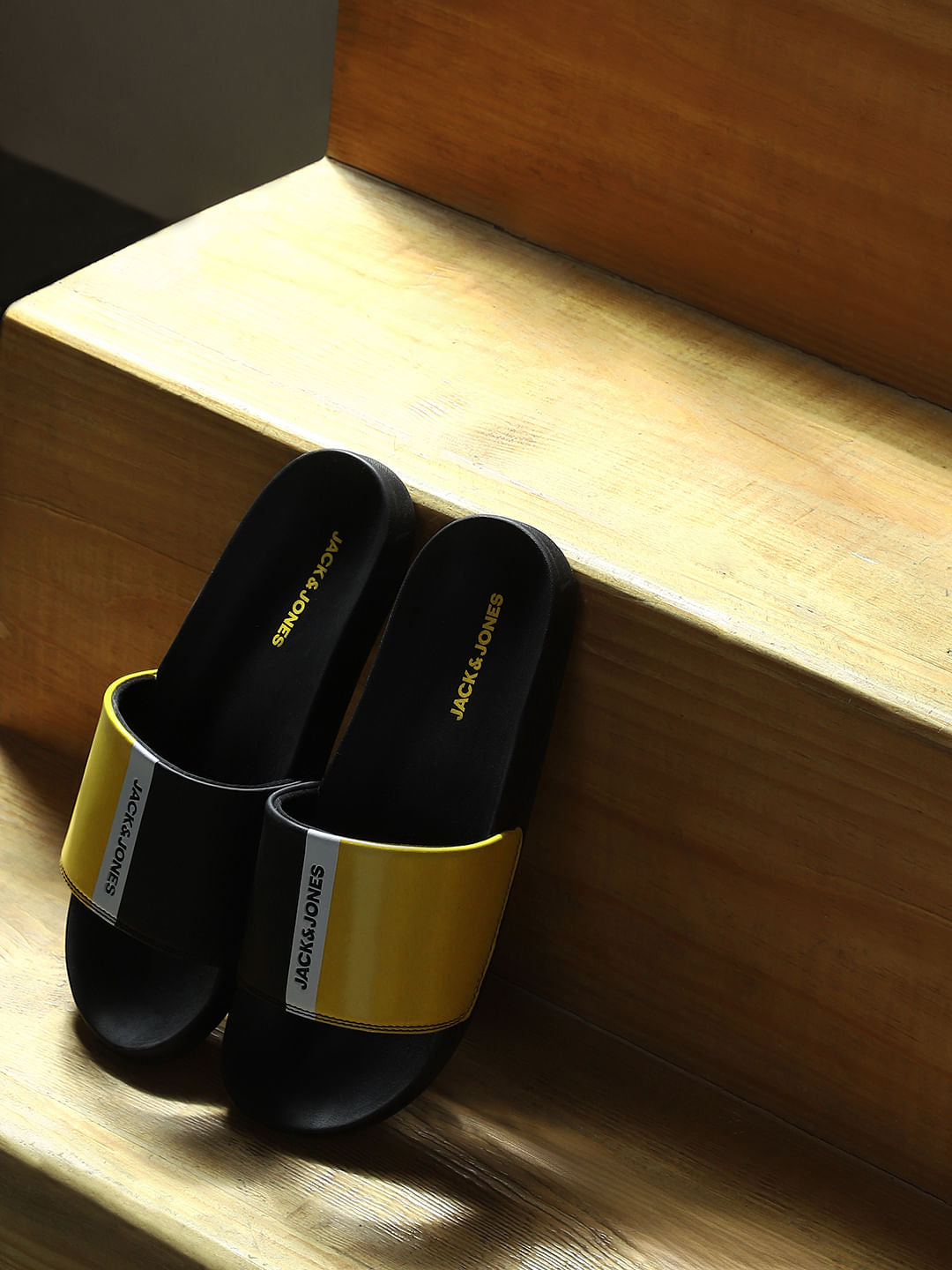 JACK&JONES brings you the ultimate men's sliders that redefine cool! Crafted from premium fabric for unbeatable durability, these sliders boast a standout colourblocked print and logo text that's all about making a statement. And the comfort? It's off the charts, thanks to the killer EVA sole. Picture this: your next pool gathering, these sliders on your feet, paired with shorts and a tee for that laid-back coolness.