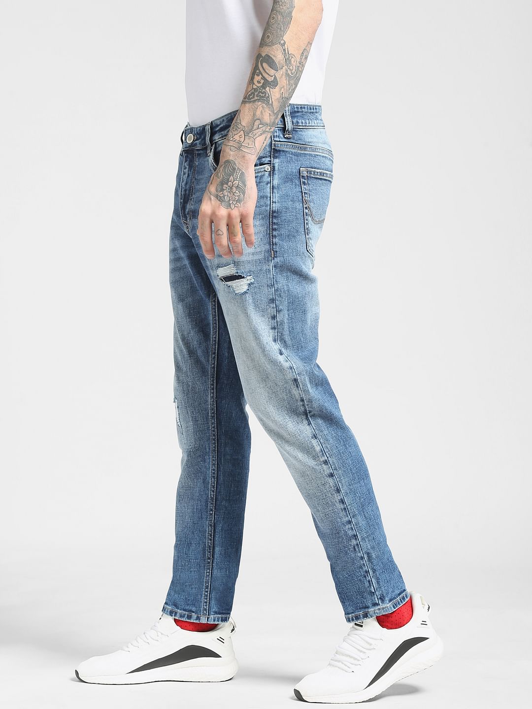 BLUE LOW RISE GLENN RIPPED SLIM JEANS