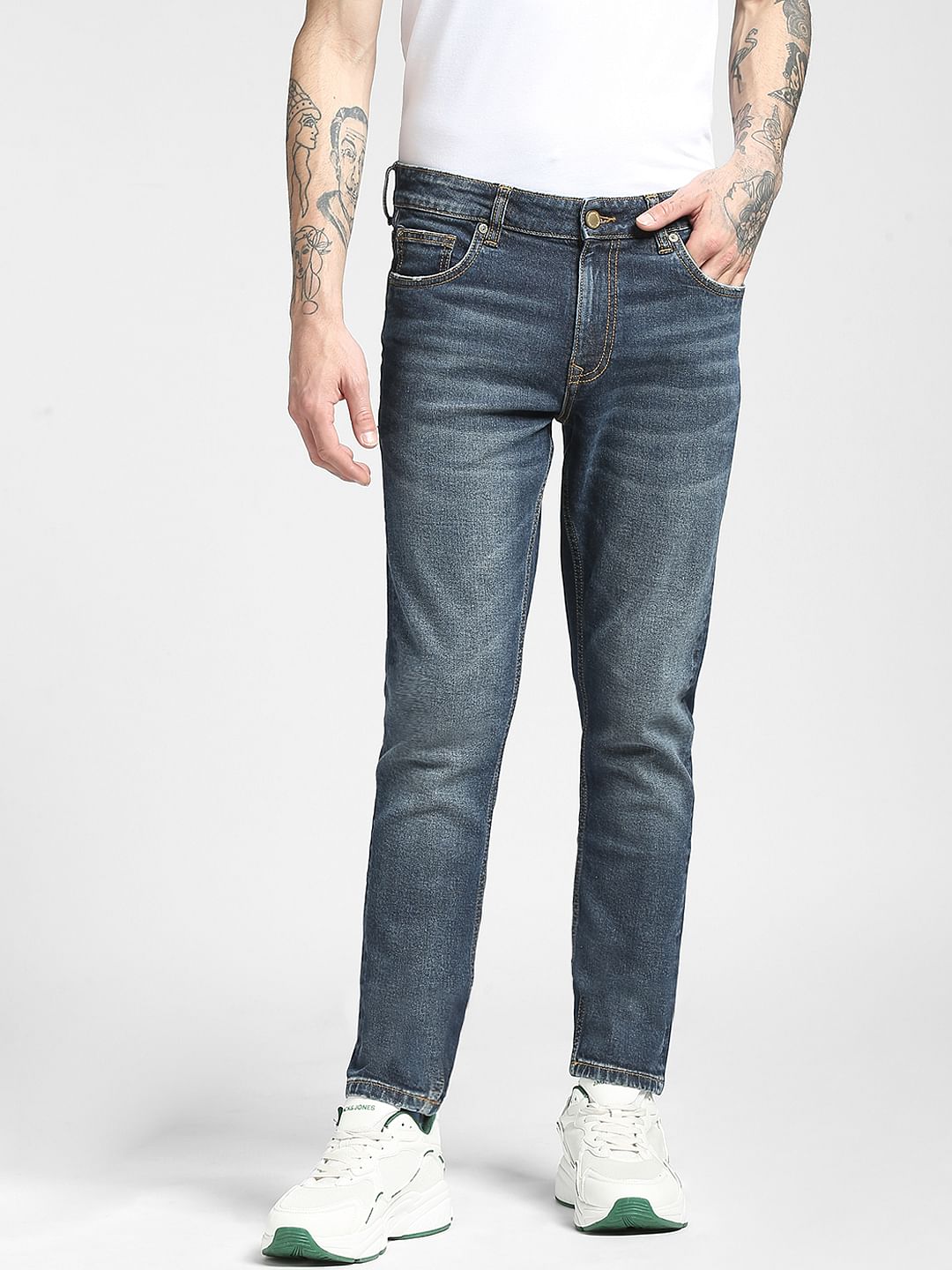 Super comfy and versatile men's blue jeans in a slim fit. Featuring a low rise. Mildly washed effect. Style 'em with a cool tee and sneakers.