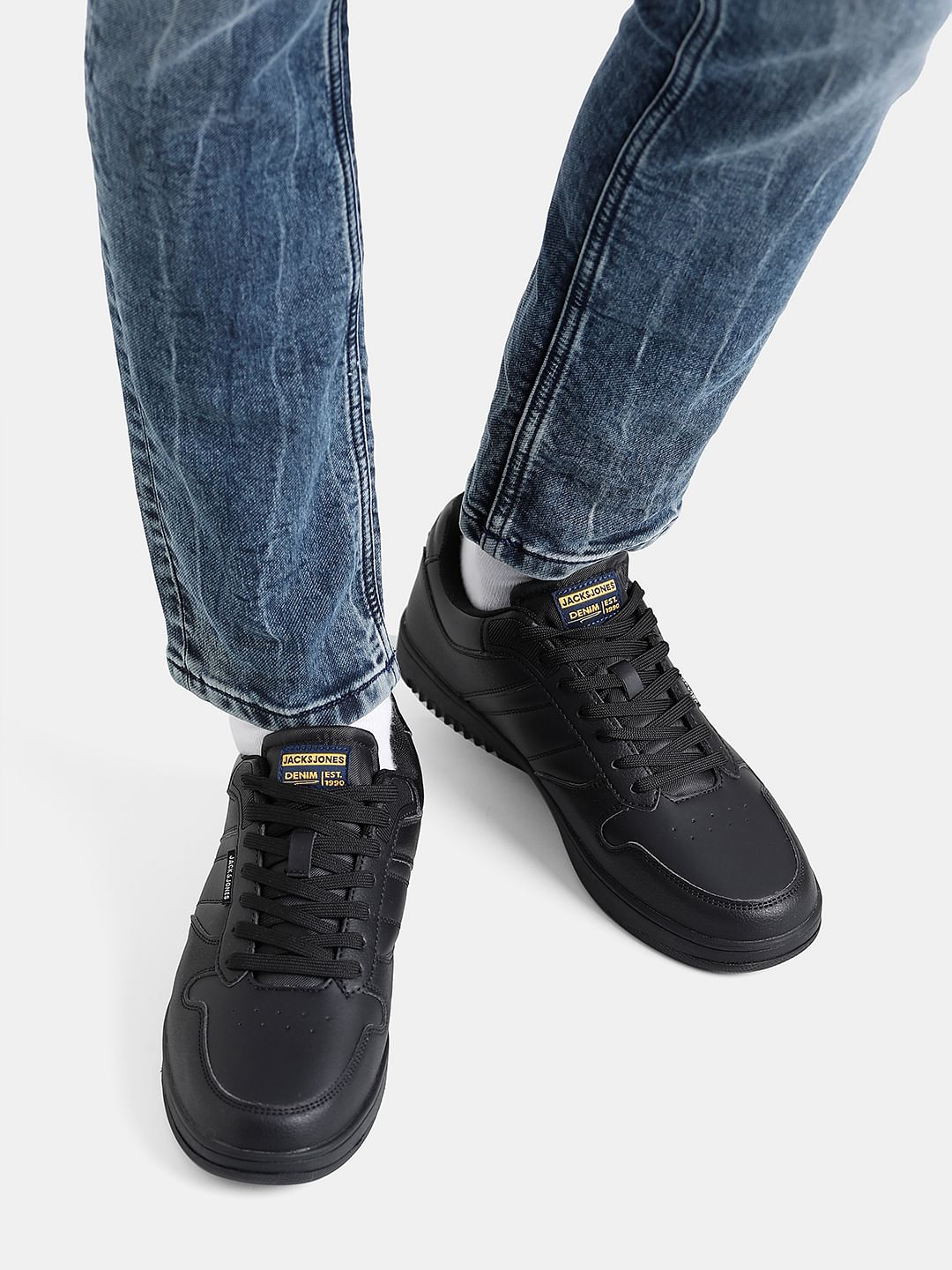 Introducing the JACK&JONES Full Black Shoe – a fashionable and versatile pair of sneakers that's sure to become a staple in your wardrobe. This classic shoe features a polyurethane upper with dotted detailing, providing an elegant look. The lightweight rubber sole provides supreme comfort and stability, making it perfect for all-day wear. Style it with tailored trousers and a crisp shirt for a smart-casual look that'll take you from day to night.