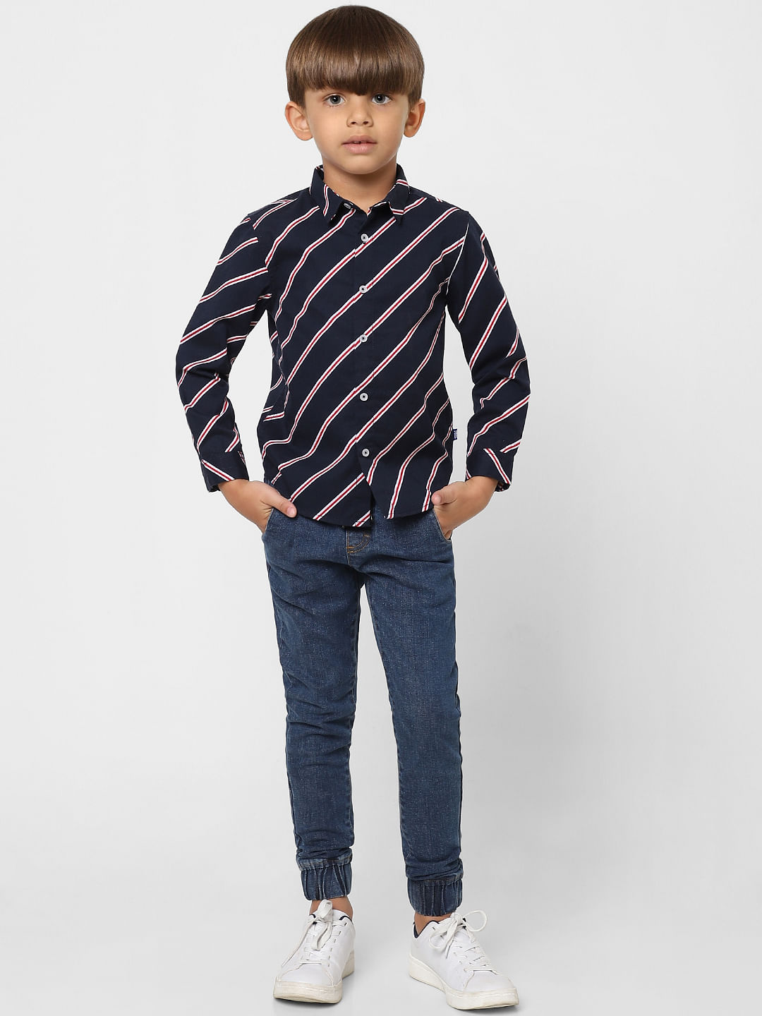 A perfect alternative to pants is this pair of blue denim joggers that is an ideal choice for any young lad who loves keeping it cool! Right from its drawstring waist to the soft fabric, comfort and style go hand-in-hand with this pair. A tee and sneakers will go well with this pair of joggers.