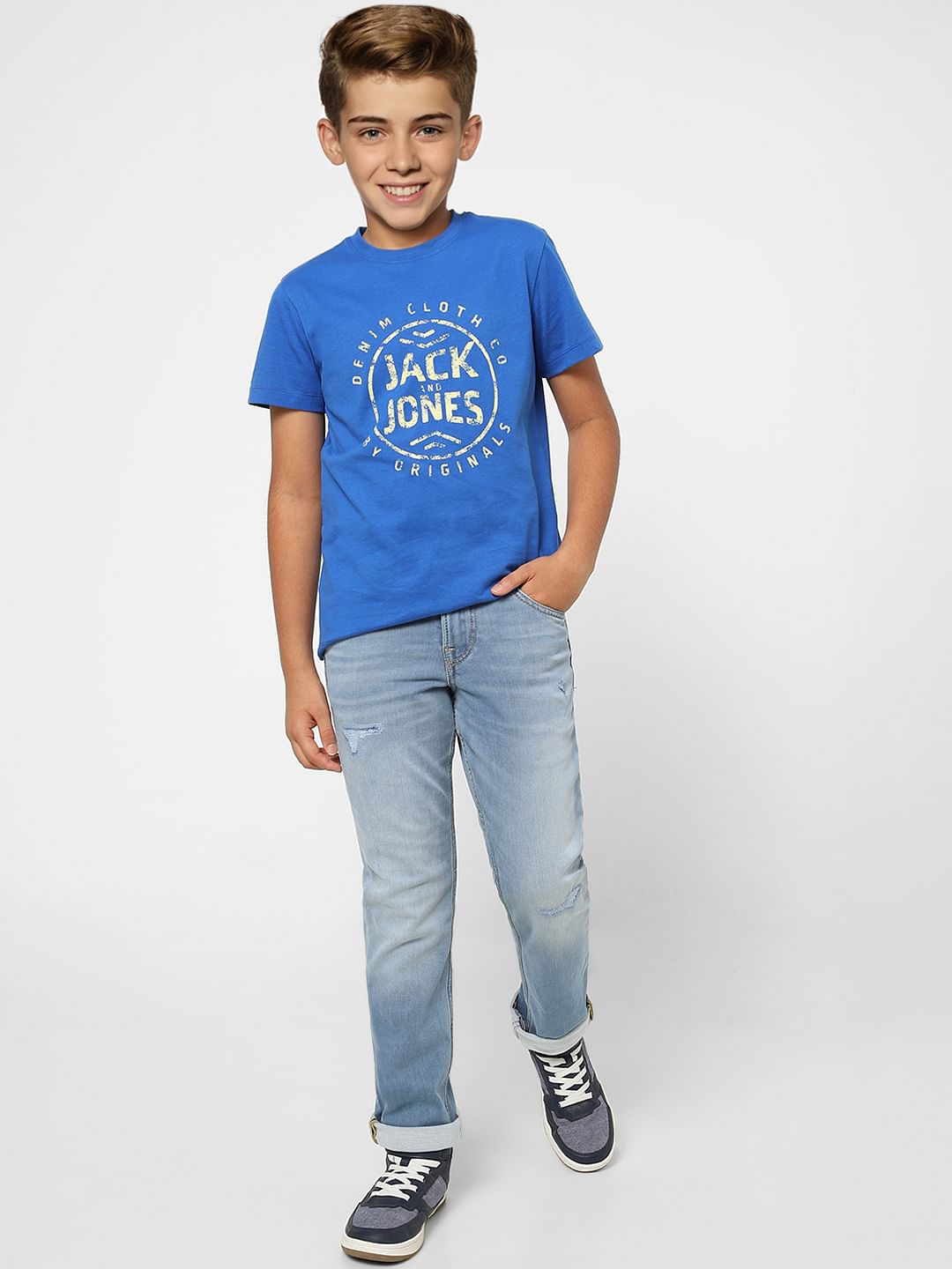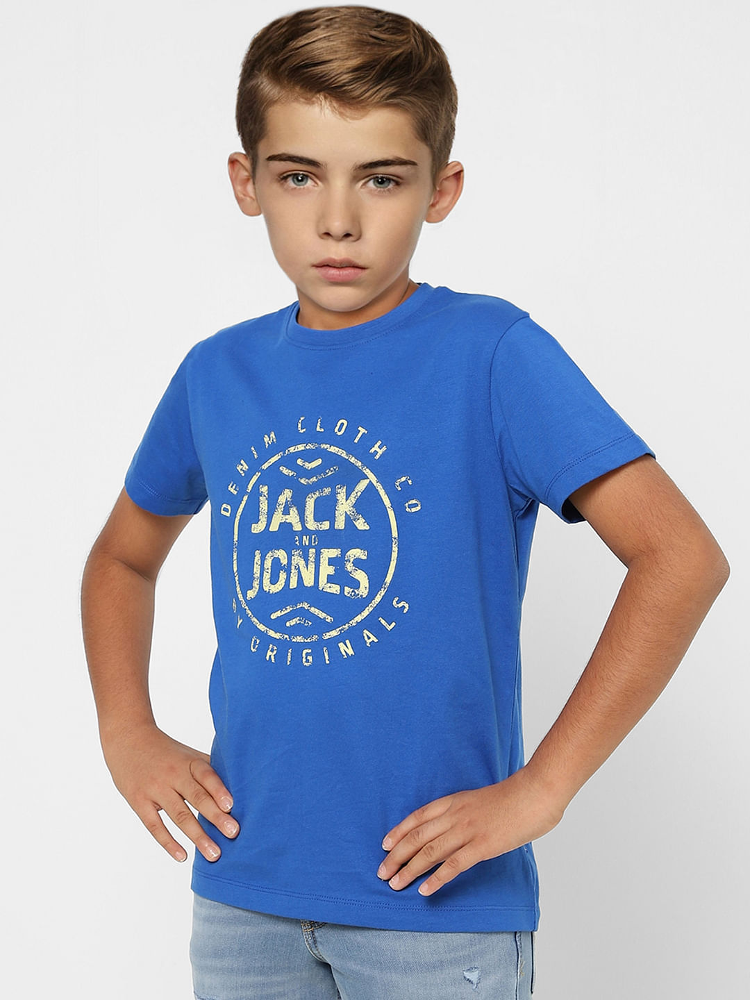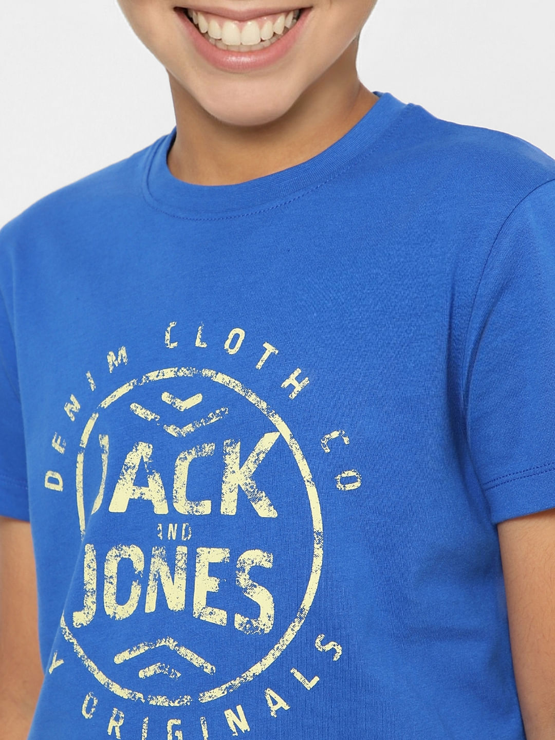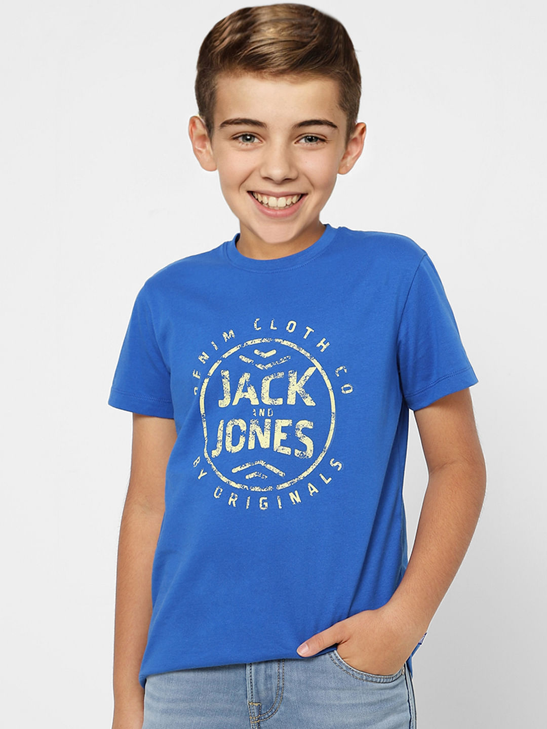 BOYS BLUE PRINTED CREW NECK T-SHIRT