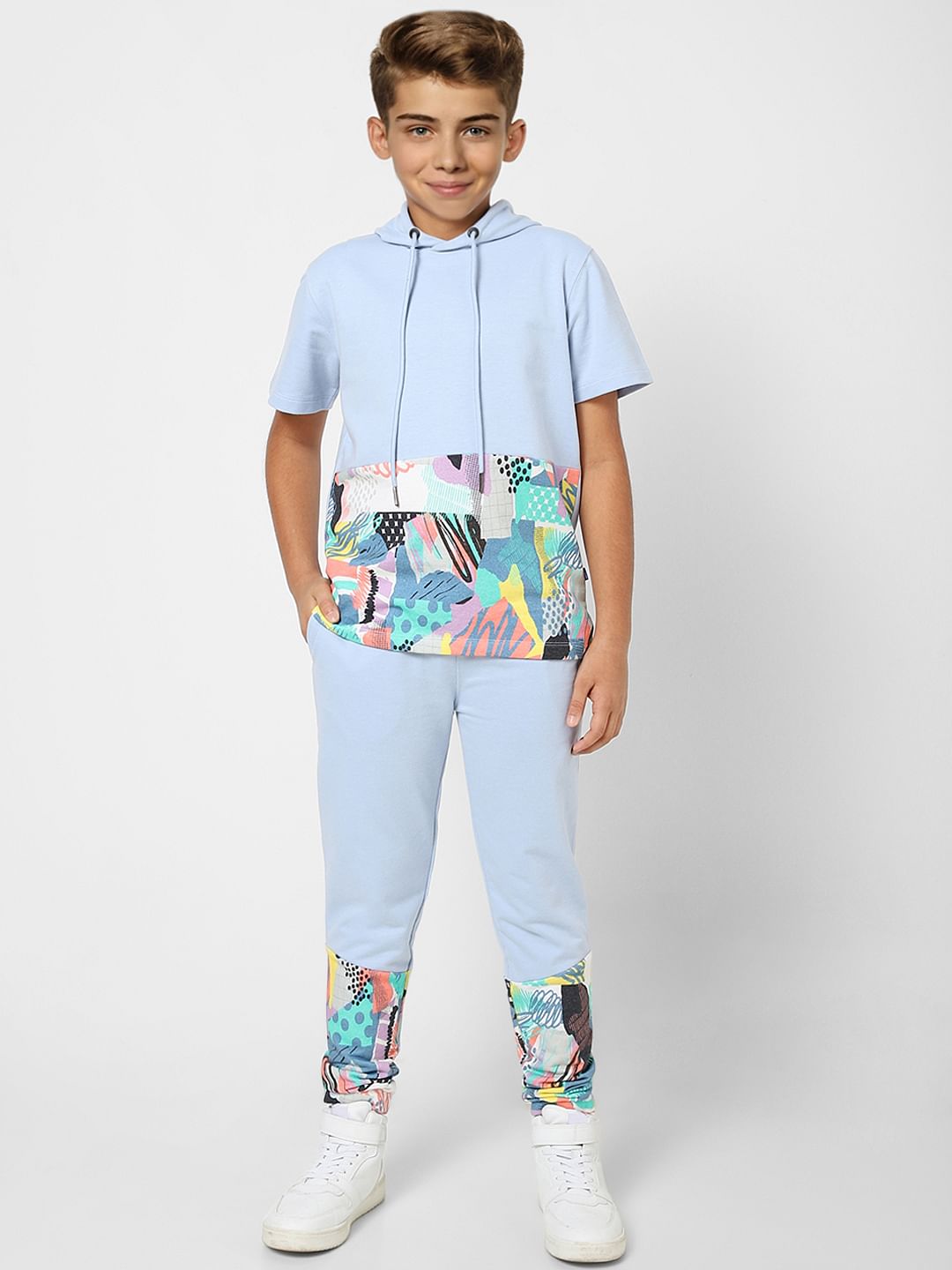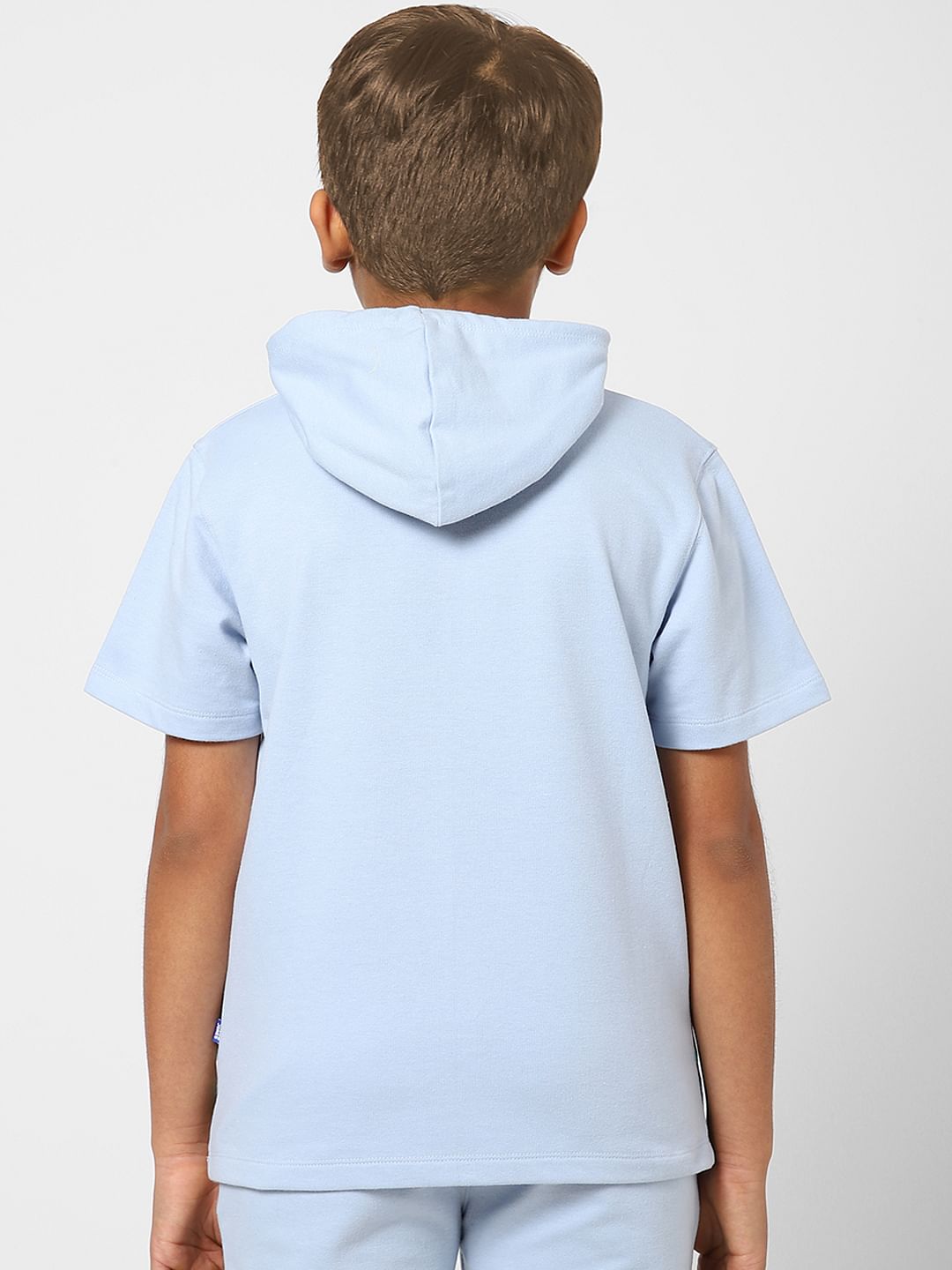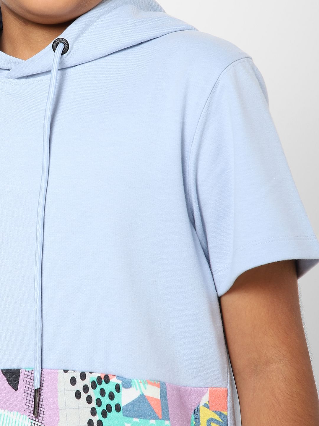BOYS BLUE PRINTED CO-ORD HOODED T-SHIRT
