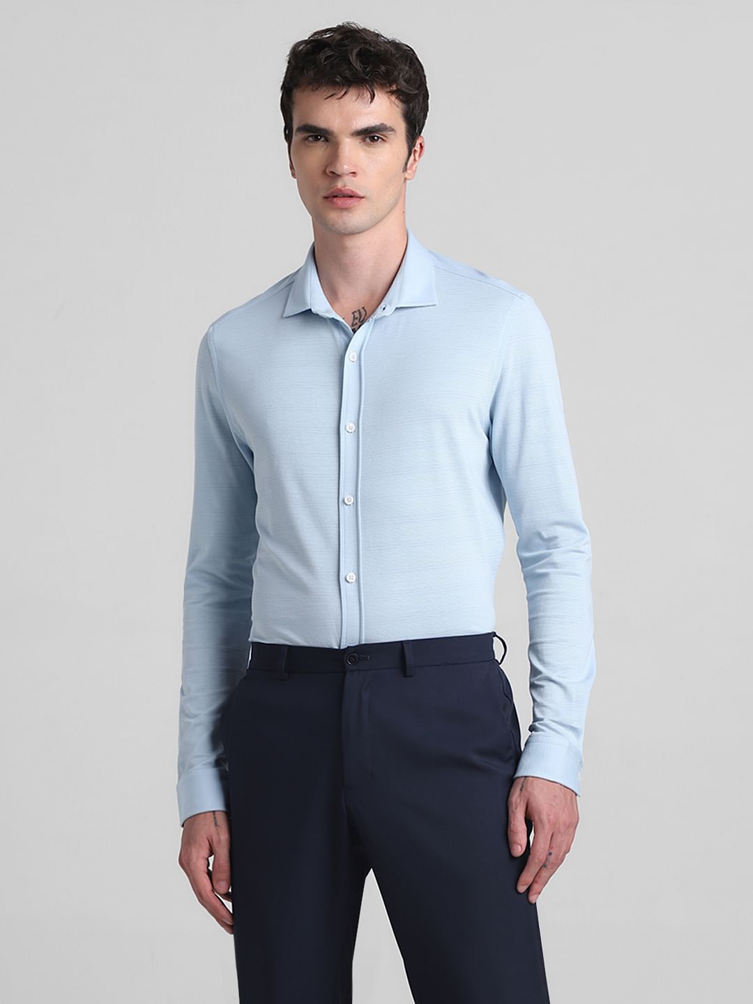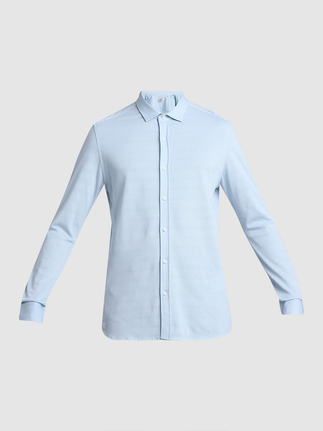 Men's light blue knitted full sleeves shirt made from 100% cotton.