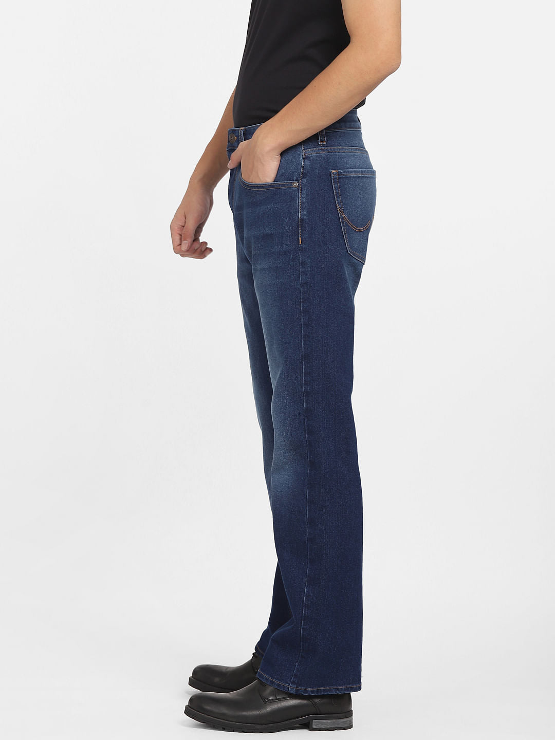 Men's High rise bootcut fit denims featuring clean cut look. Made from comfy stretch fabric. Style with a tee and sneakers for a cool look.