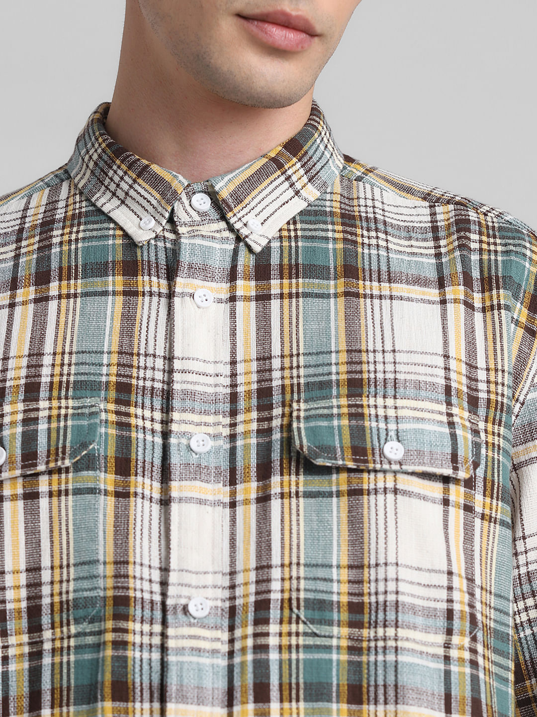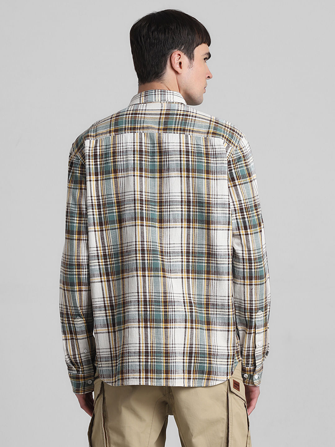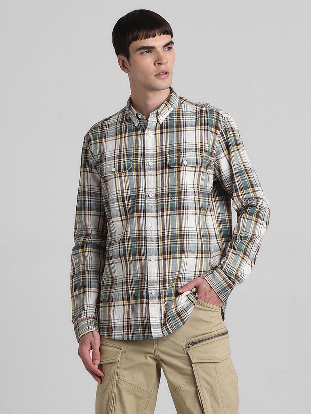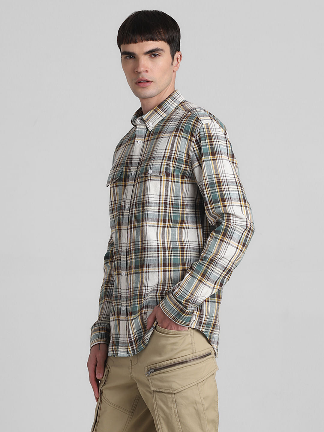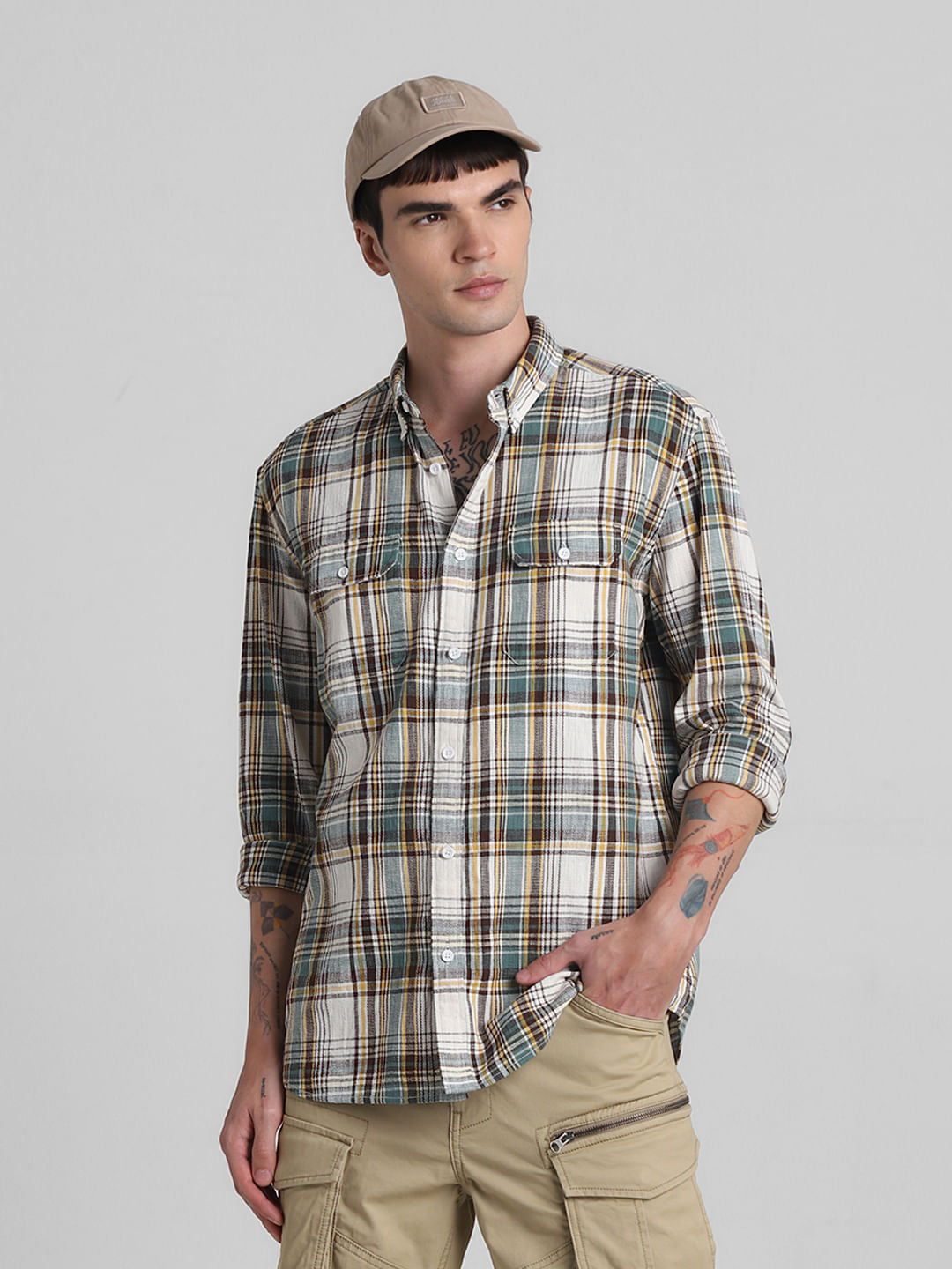 Dive into urban cool with our cotton blend full sleeves shirt, featuring a check print. Designed for the modern trendsetter, this regular-fit shirt exudes effortless style. The front button closure adds a touch of sophistication, making it the perfect fusion of comfort and flair. Style note: Pair with denim and your favourite sneakers for an instantly chic street-ready look.