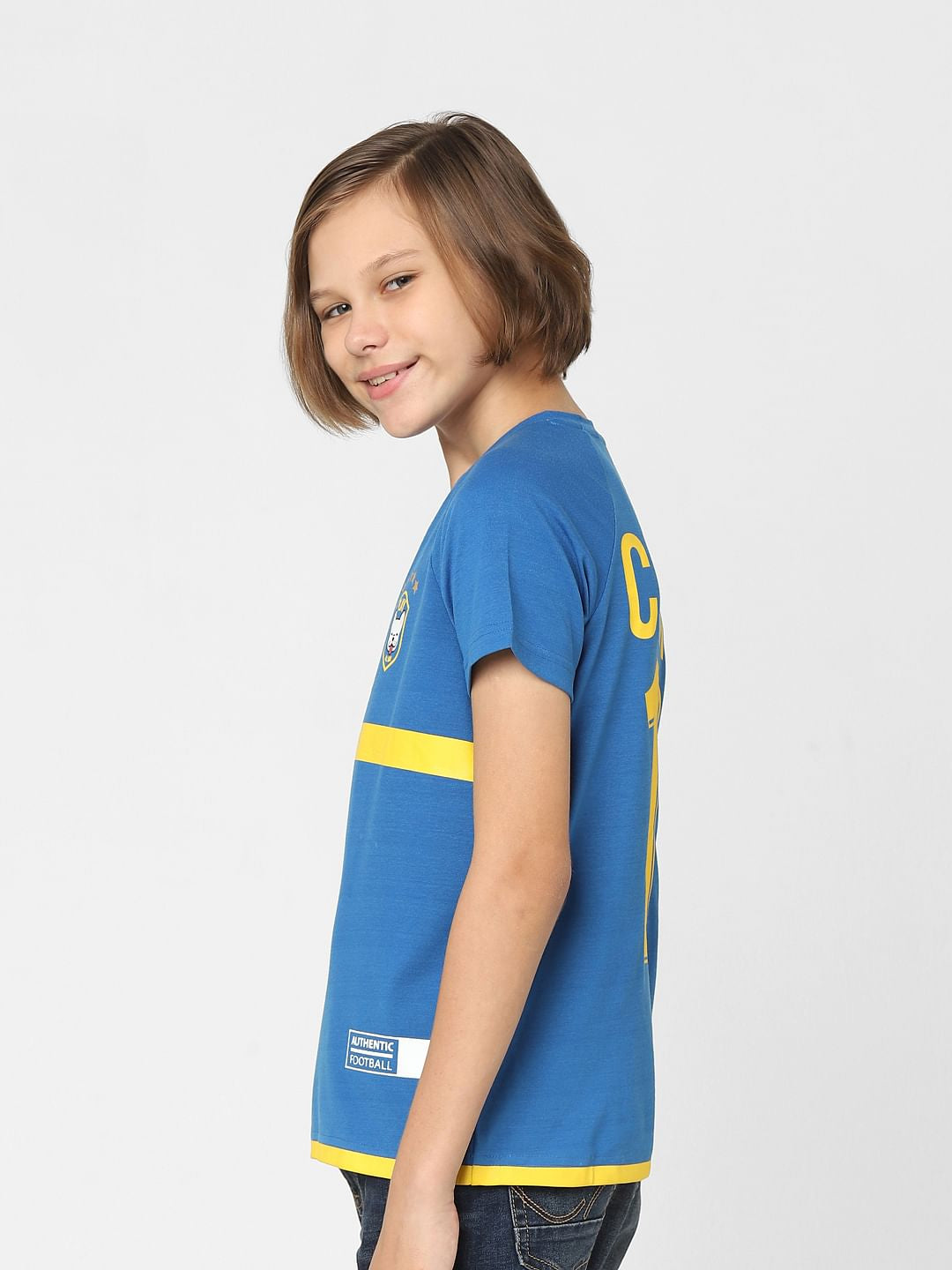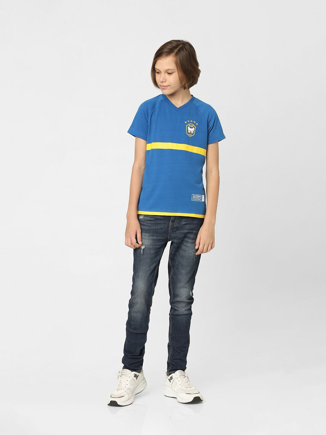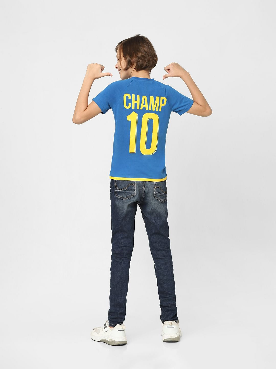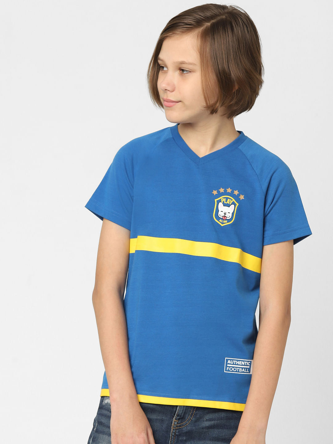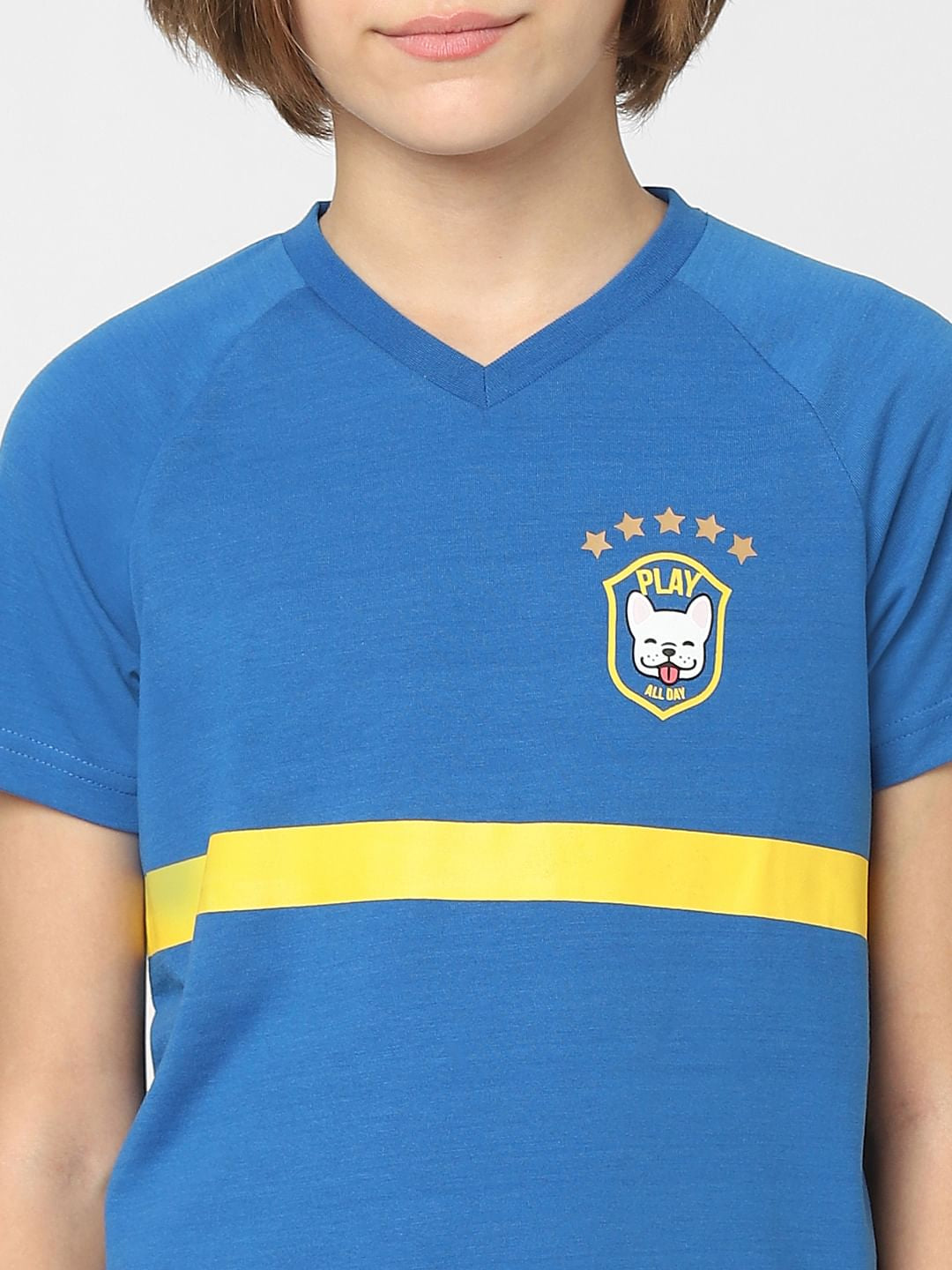 BOYS BLUE PRINTED CREW NECK T-SHIRT