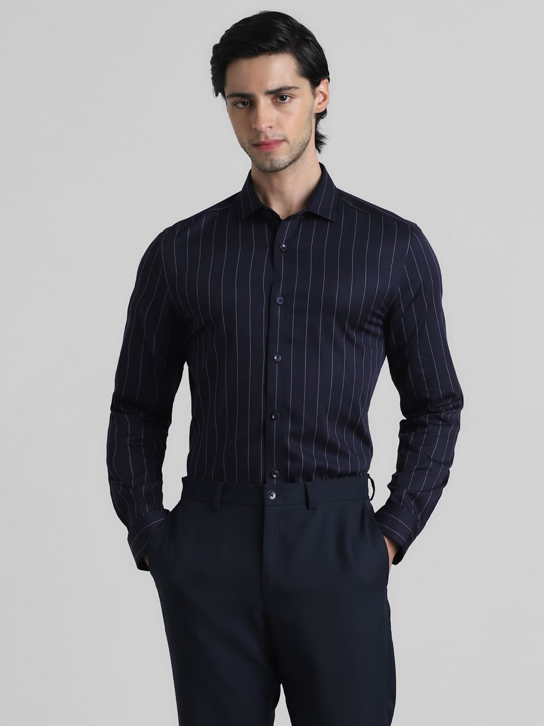 DARK BLUE STRIPED FULL SLEEVES SHIRT