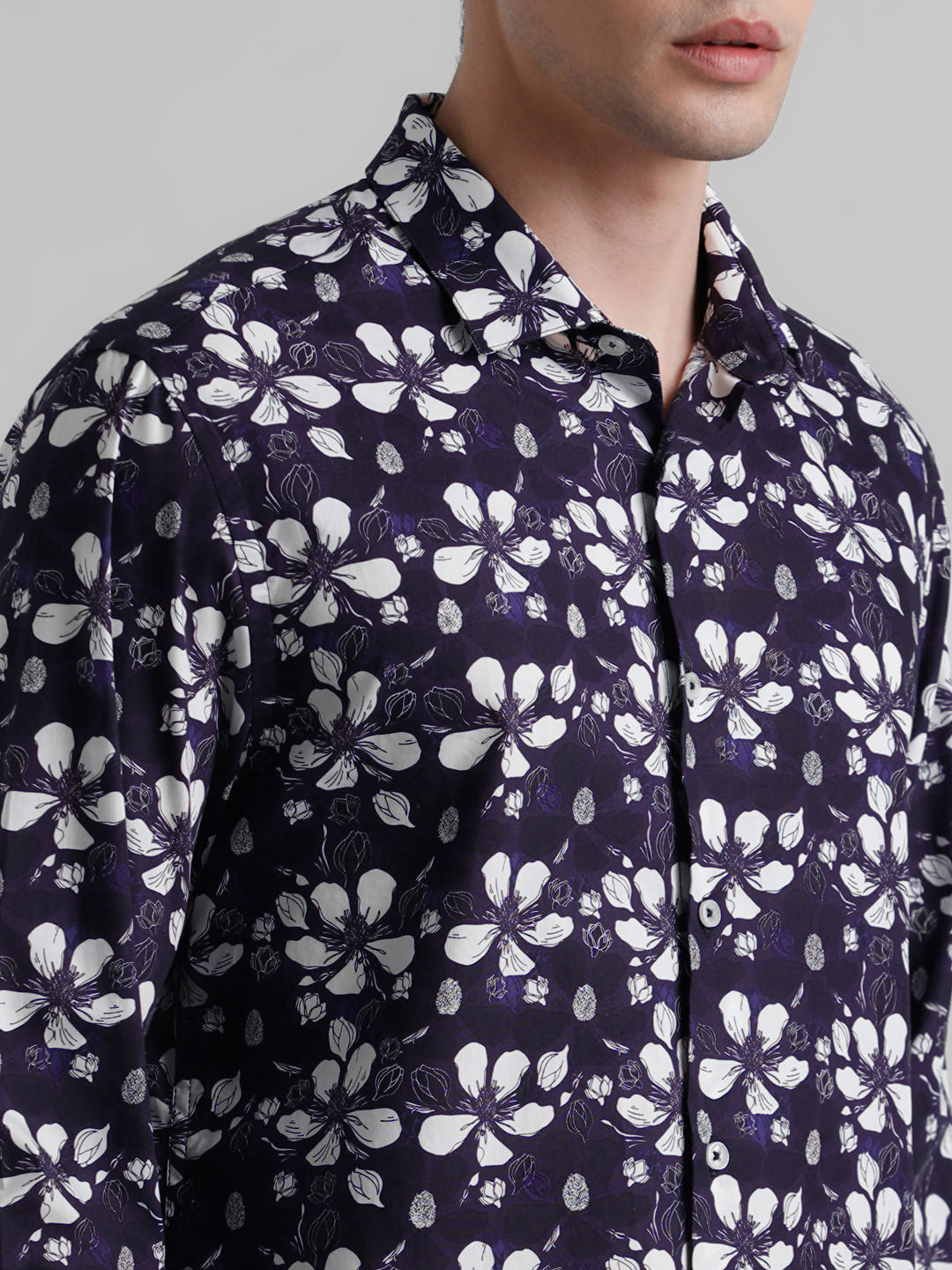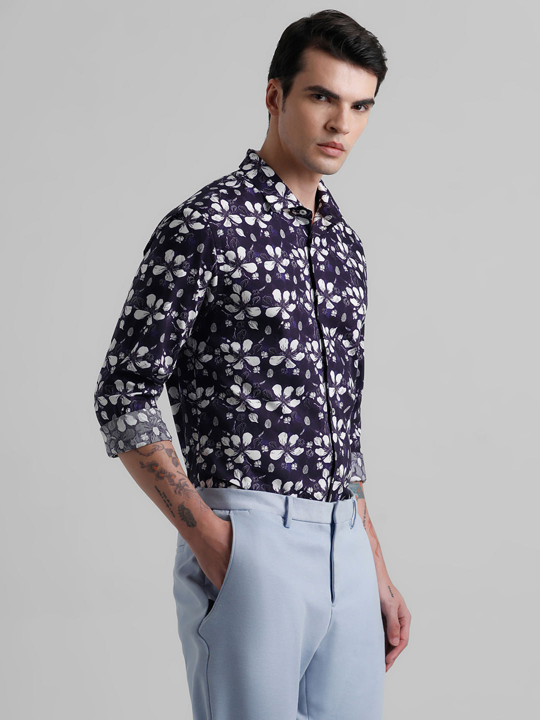 PURPLE FLORAL FULL SLEEVES SHIRT
