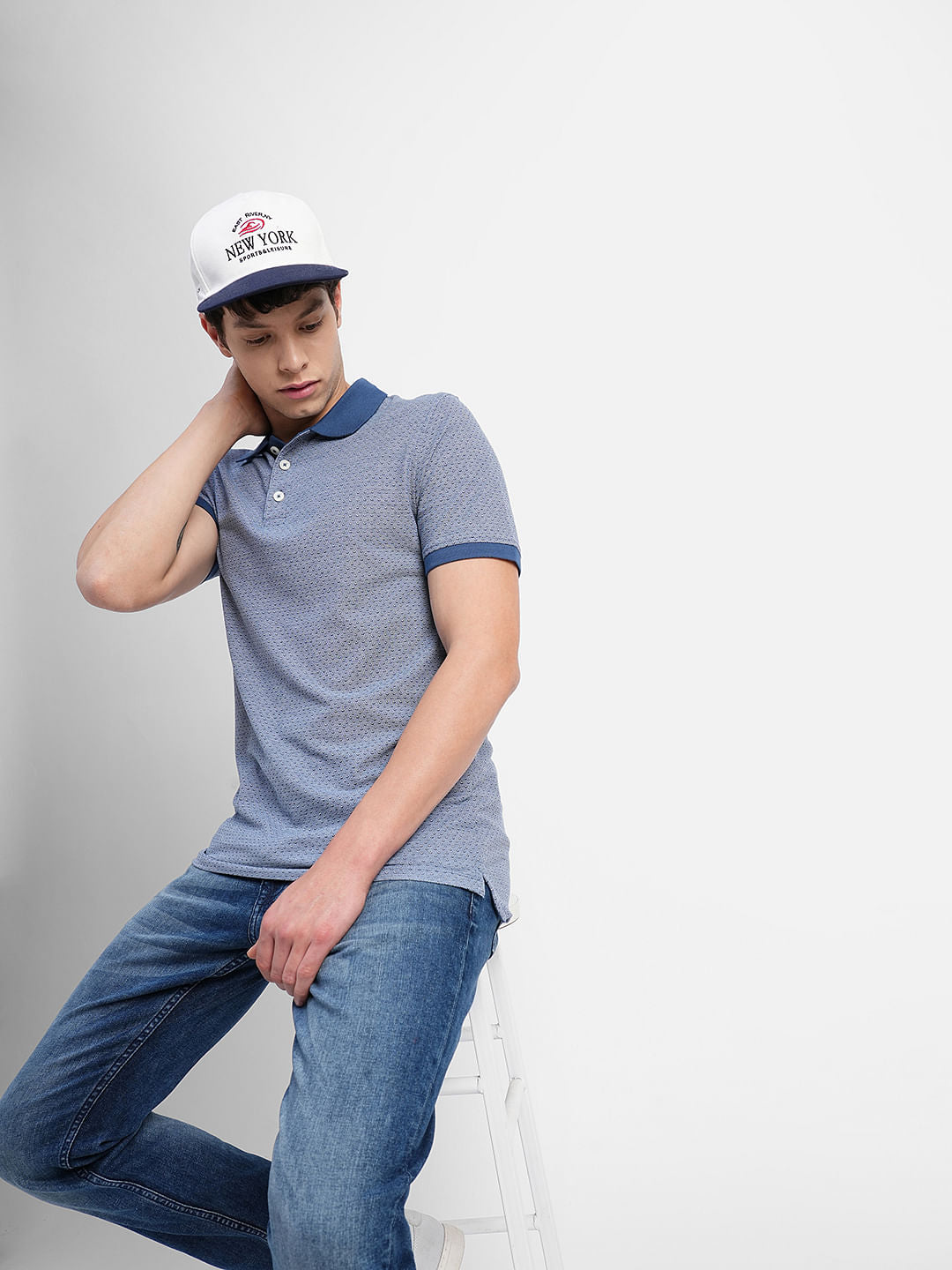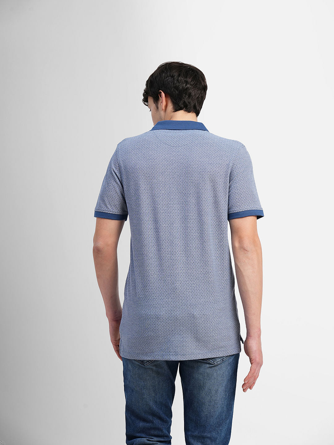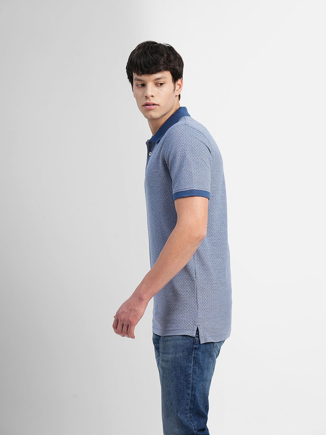 All over ditsy print polo neck tee made from cotton blend fabric. Cut in a slim fit. Style with denims and sneakers for a smart-casual look.
