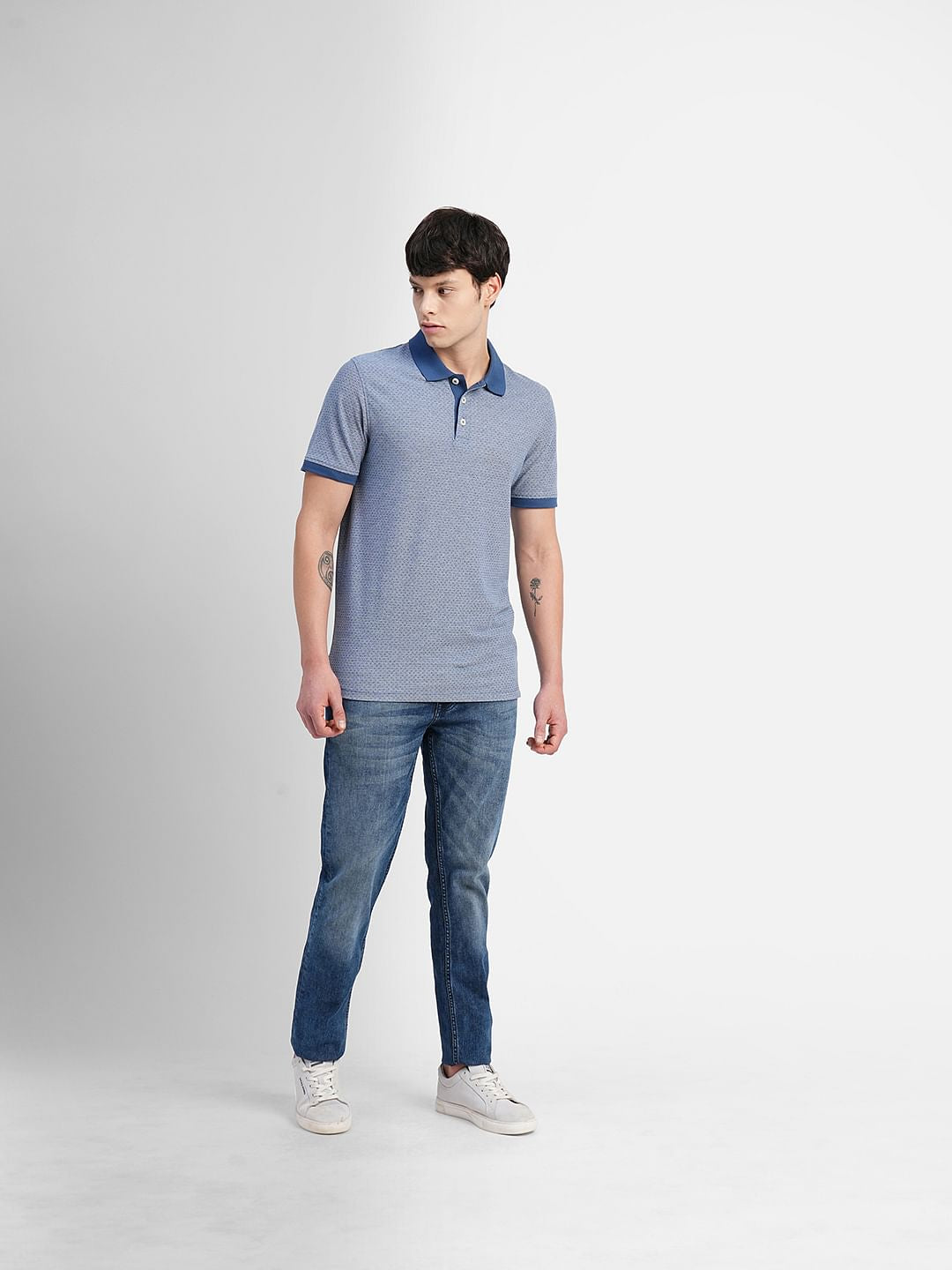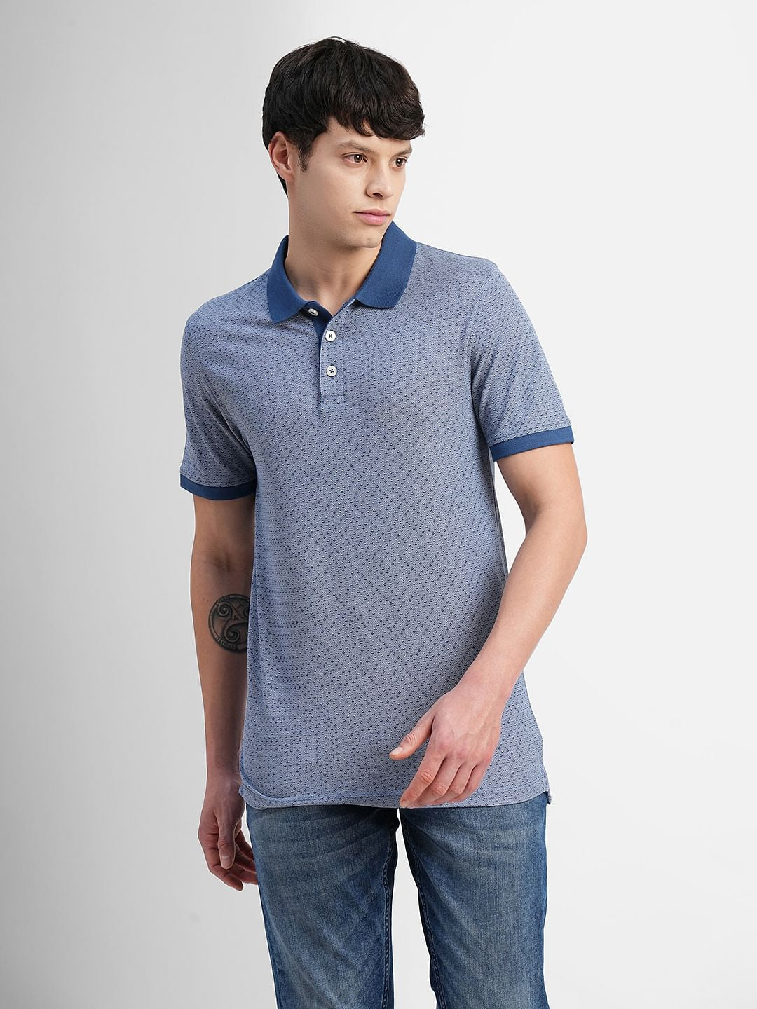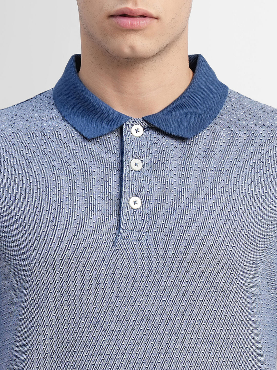 All over ditsy print polo neck tee made from cotton blend fabric. Cut in a slim fit. Style with denims and sneakers for a smart-casual look.