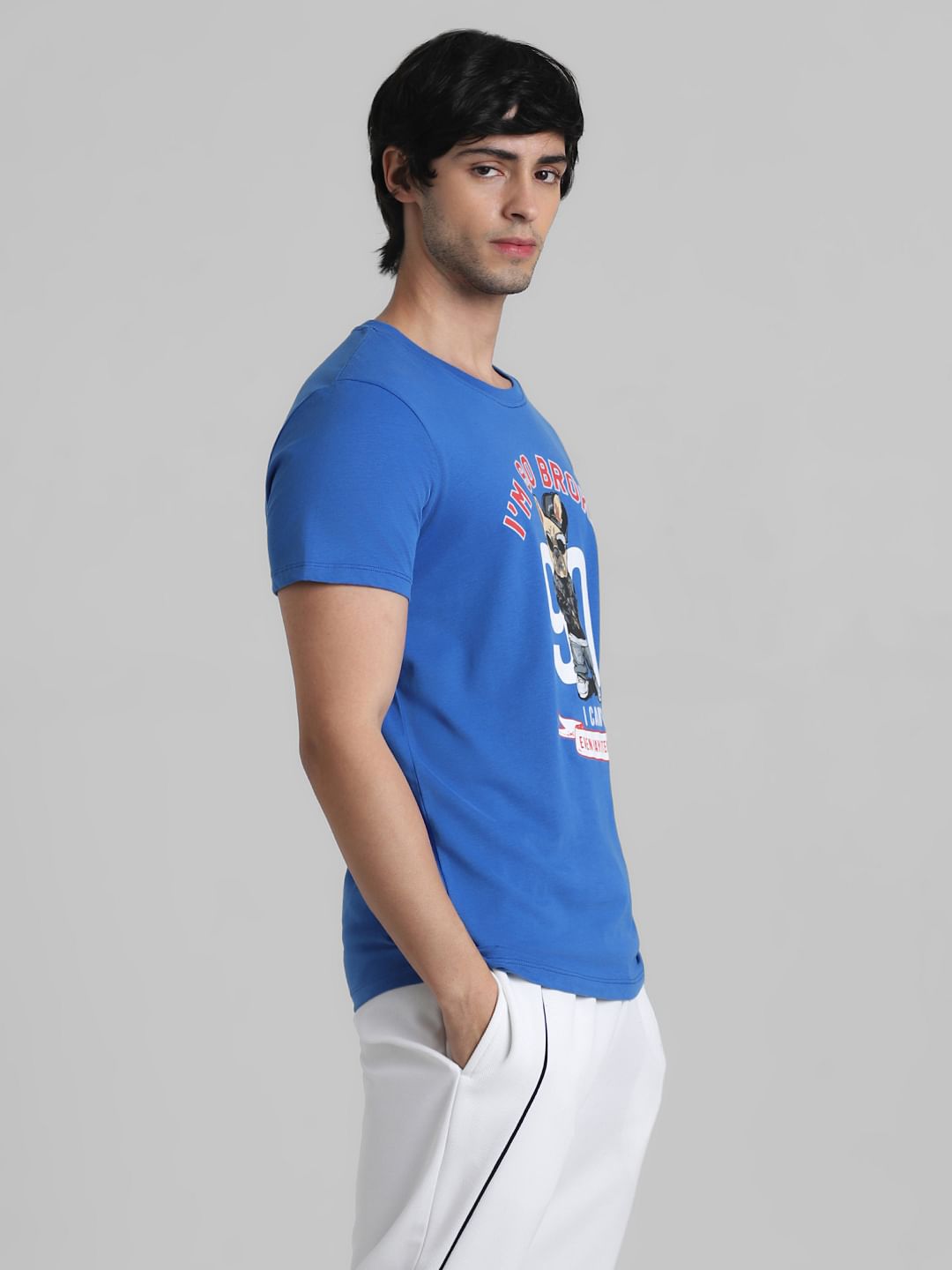 URBAN RACERS BY JACK&JONES BLUE GRAPHIC PRINT CREW NECK T-SHIRT