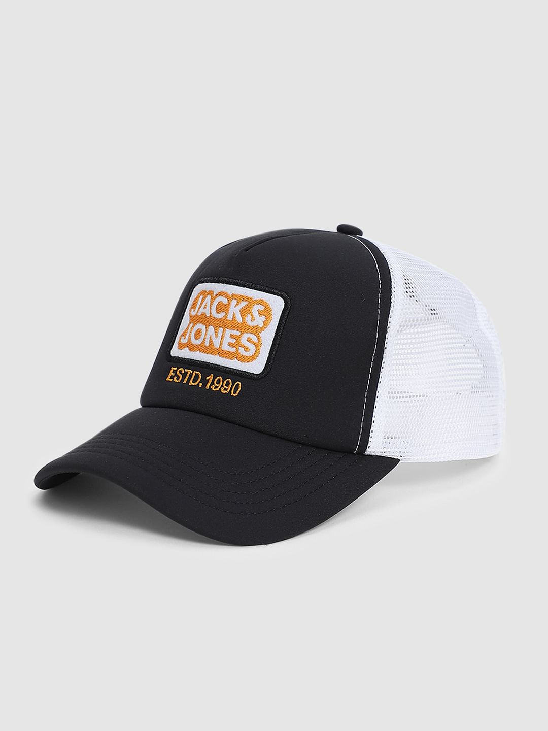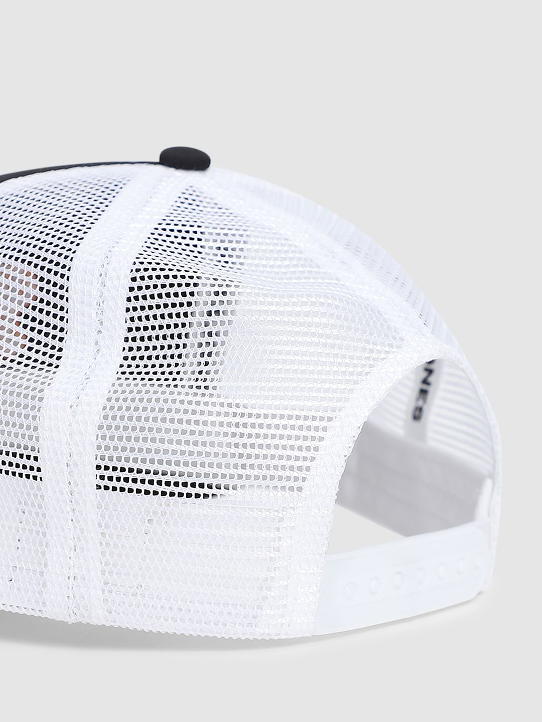 Men's colourblocked trucker cap made with mesh fabric detailing and front logo badge print.