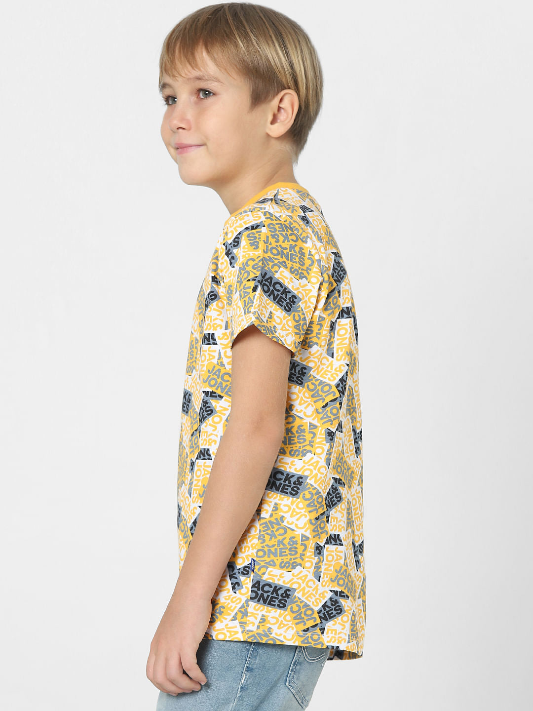 BOYS YELLOW LOGO PRINT CREW NECK T-SHIRT
